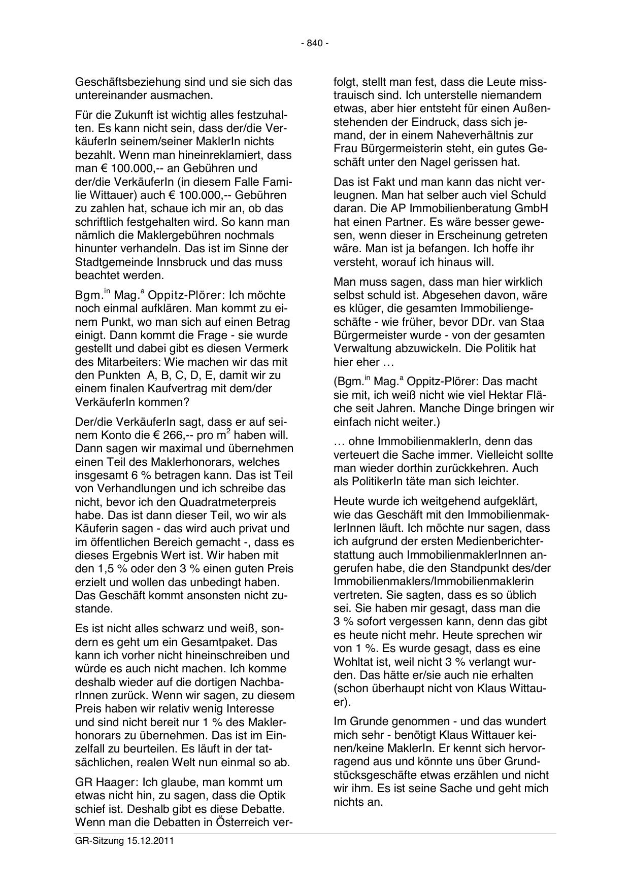 Wenn man die Debatten in Österreich verGR-Sitzung 15.12.2011