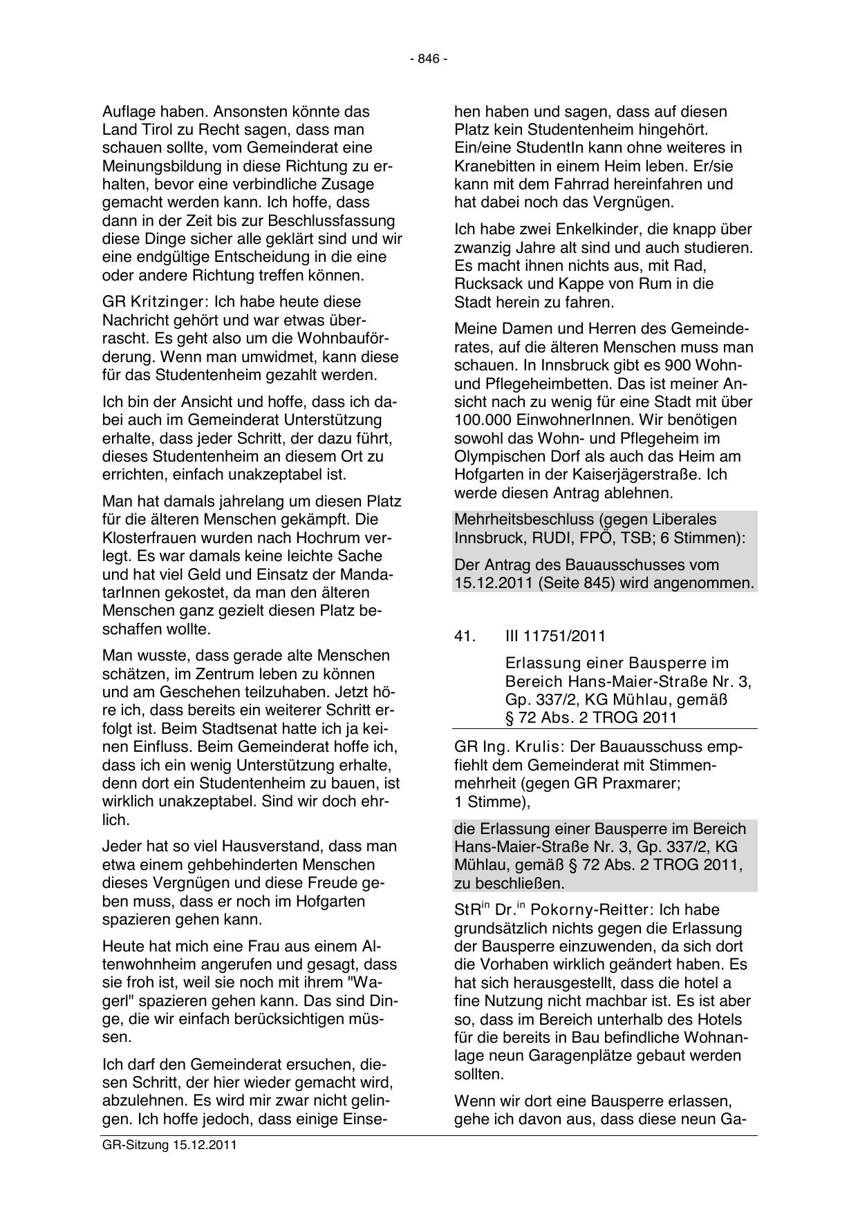 Innsbruck, RUDI, FPÖ, TSB; 6 Stimmen):
