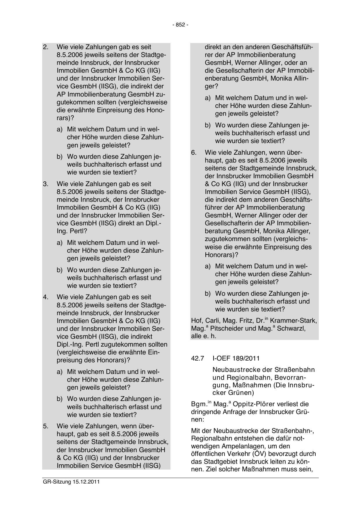 und der Innsbrucker Immobilien Service GesmbH (IISG) direkt an Dipl.Ing. Pertl?