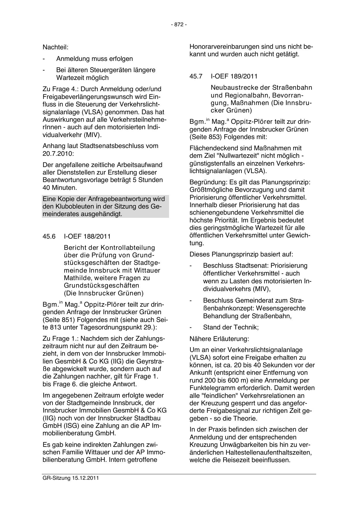 Bgm.in Mag.a Oppitz-Plörer teilt zur dringenden Anfrage der Innsbrucker Grünen
