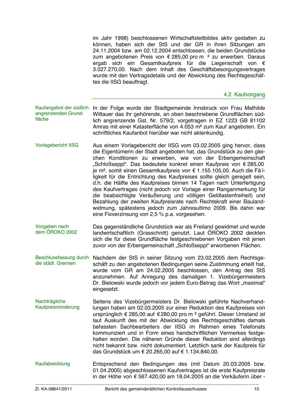 Seitens des Vizebürgermeisters Dr. Bielowski geführte Nachverhandlungen haben am 02.03.2005 zur einer Reduktion des Kaufpreises von