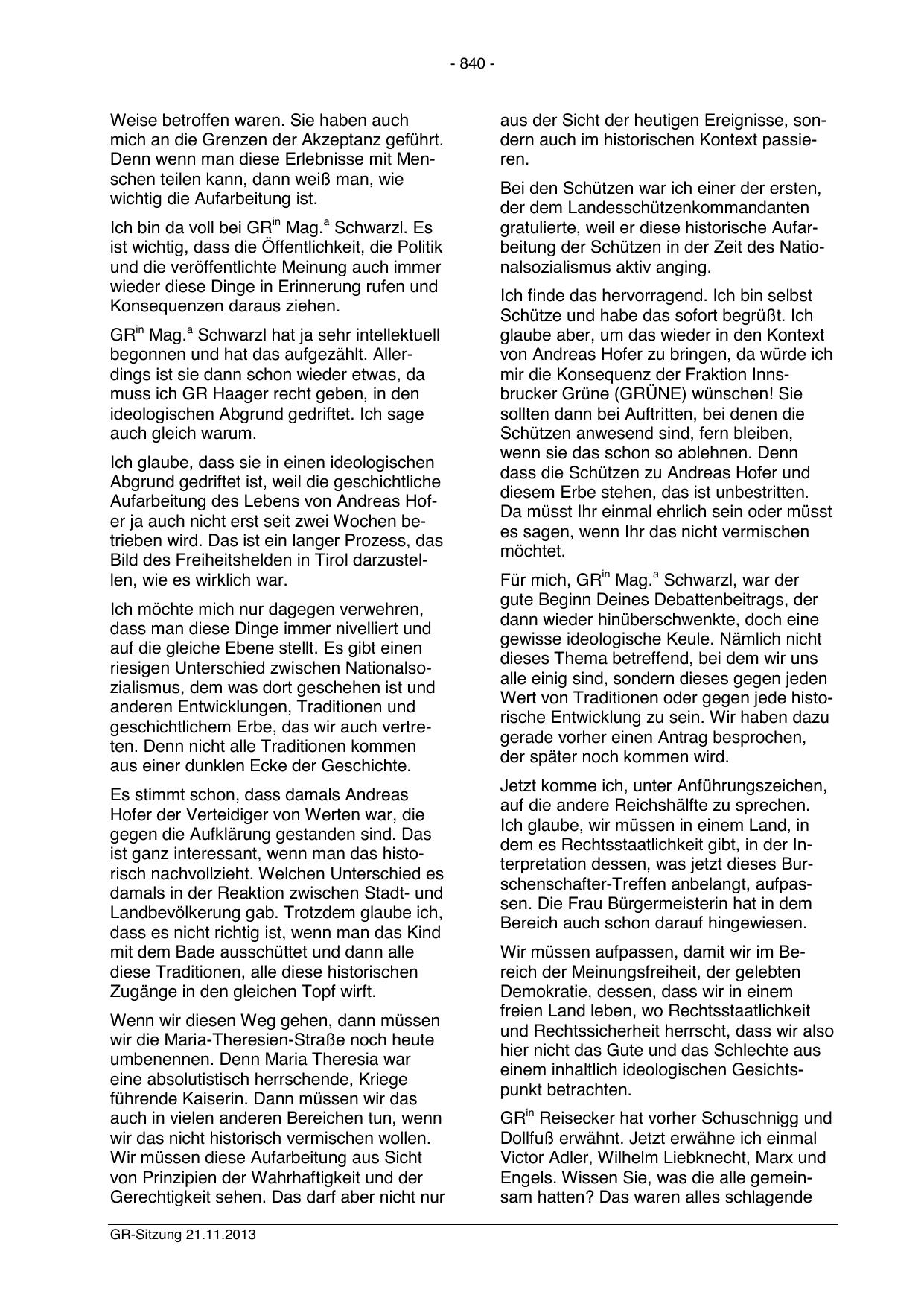 mir die Konsequenz der Fraktion Innsbrucker Grüne (GRÜNE) wünschen! Sie