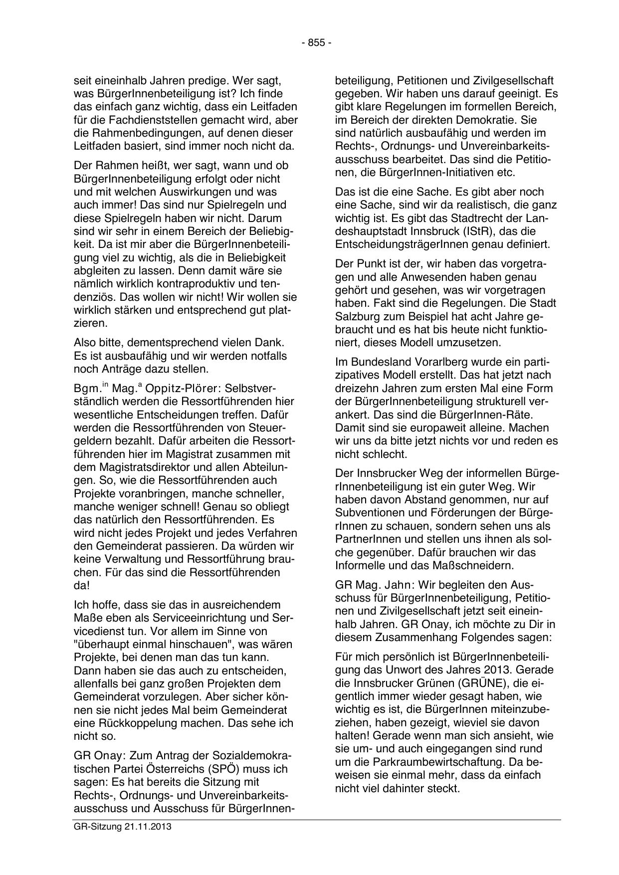 Rechts-, Ordnungs- und Unvereinbarkeitsausschuss und Ausschuss für BürgerInnenGR-Sitzung 21.11.2013