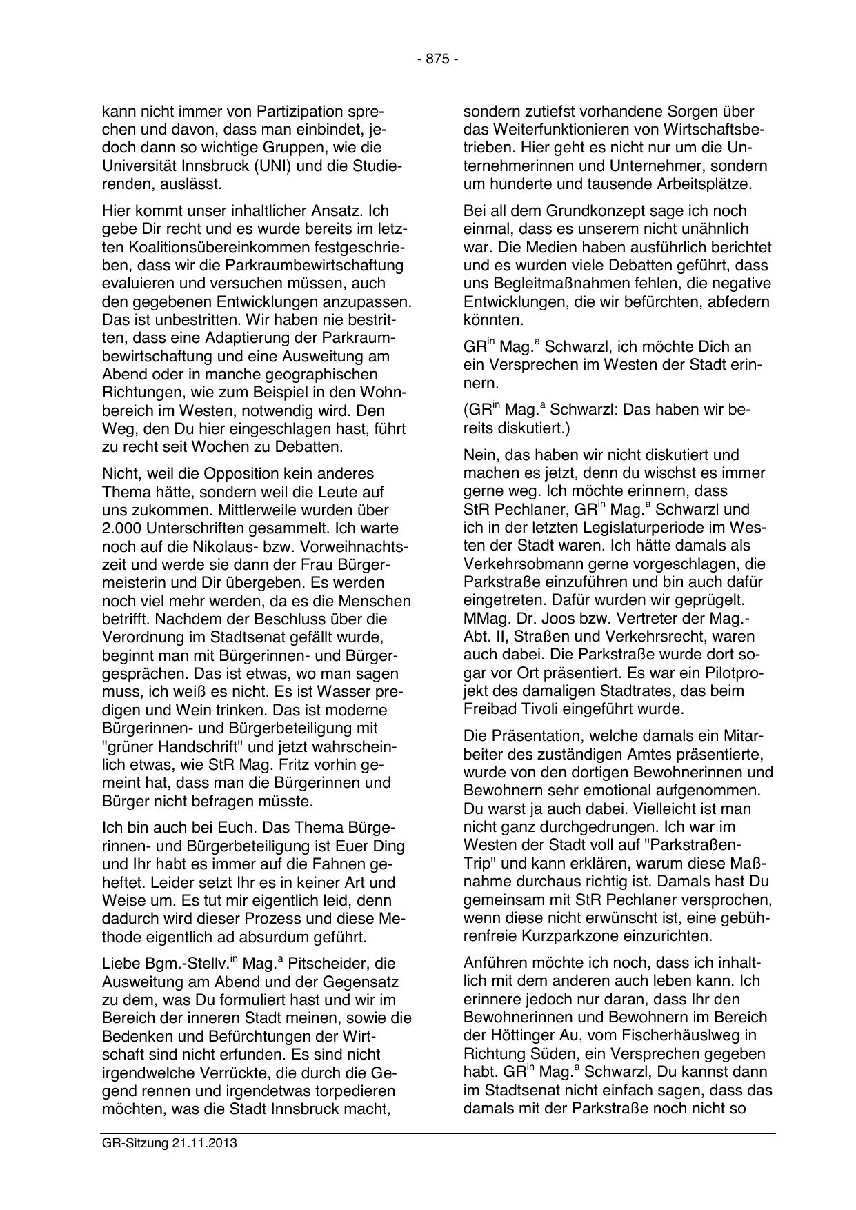 habt. GRin Mag.a Schwarzl, Du kannst dann