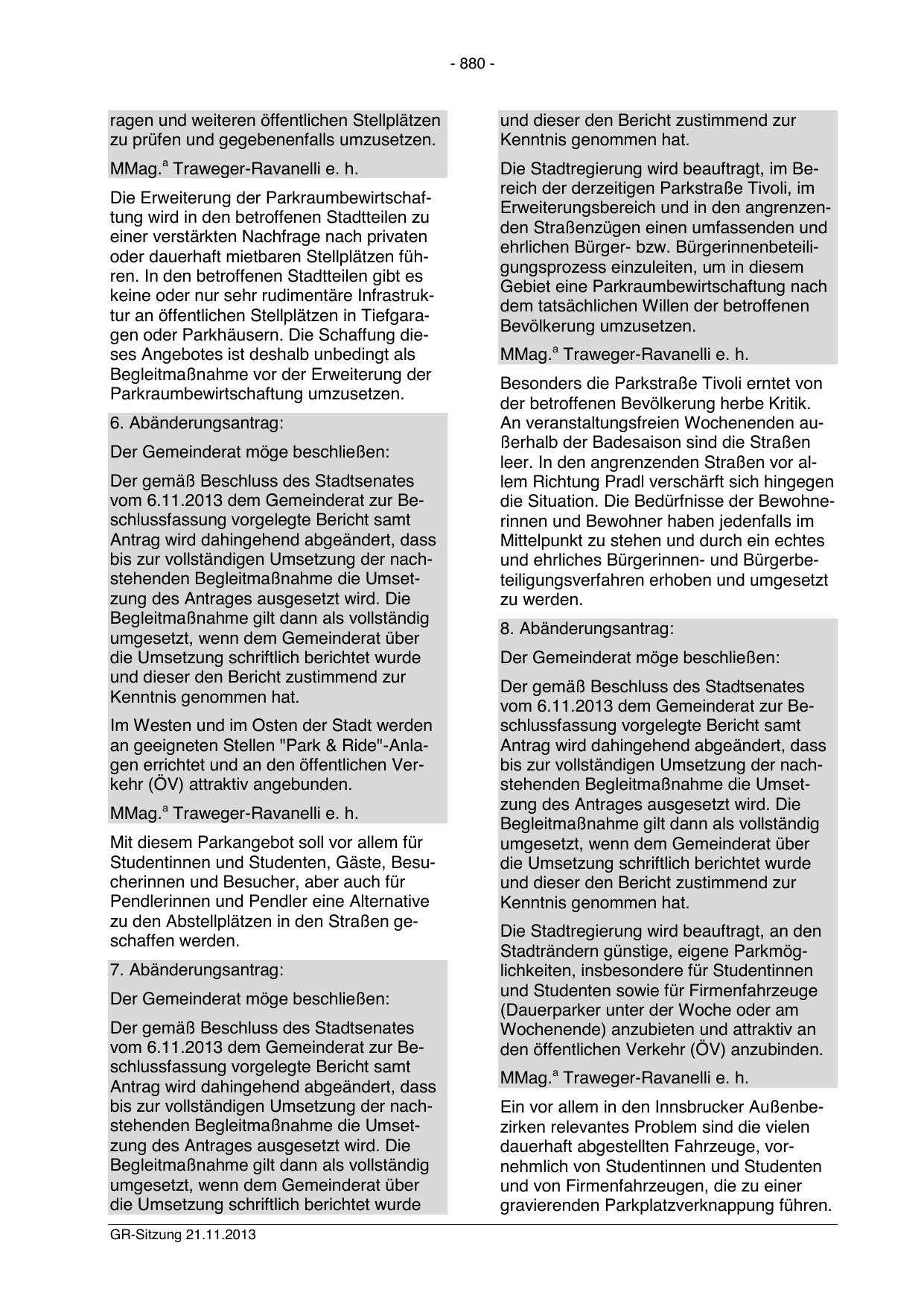 vom 6.11.2013 dem Gemeinderat zur Beschlussfassung vorgelegte Bericht samt