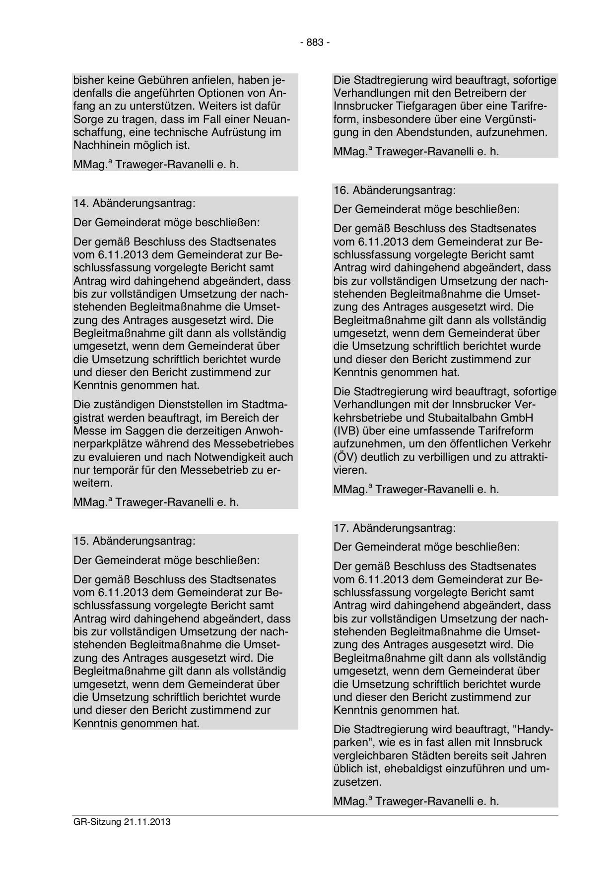 vom 6.11.2013 dem Gemeinderat zur Beschlussfassung vorgelegte Bericht samt