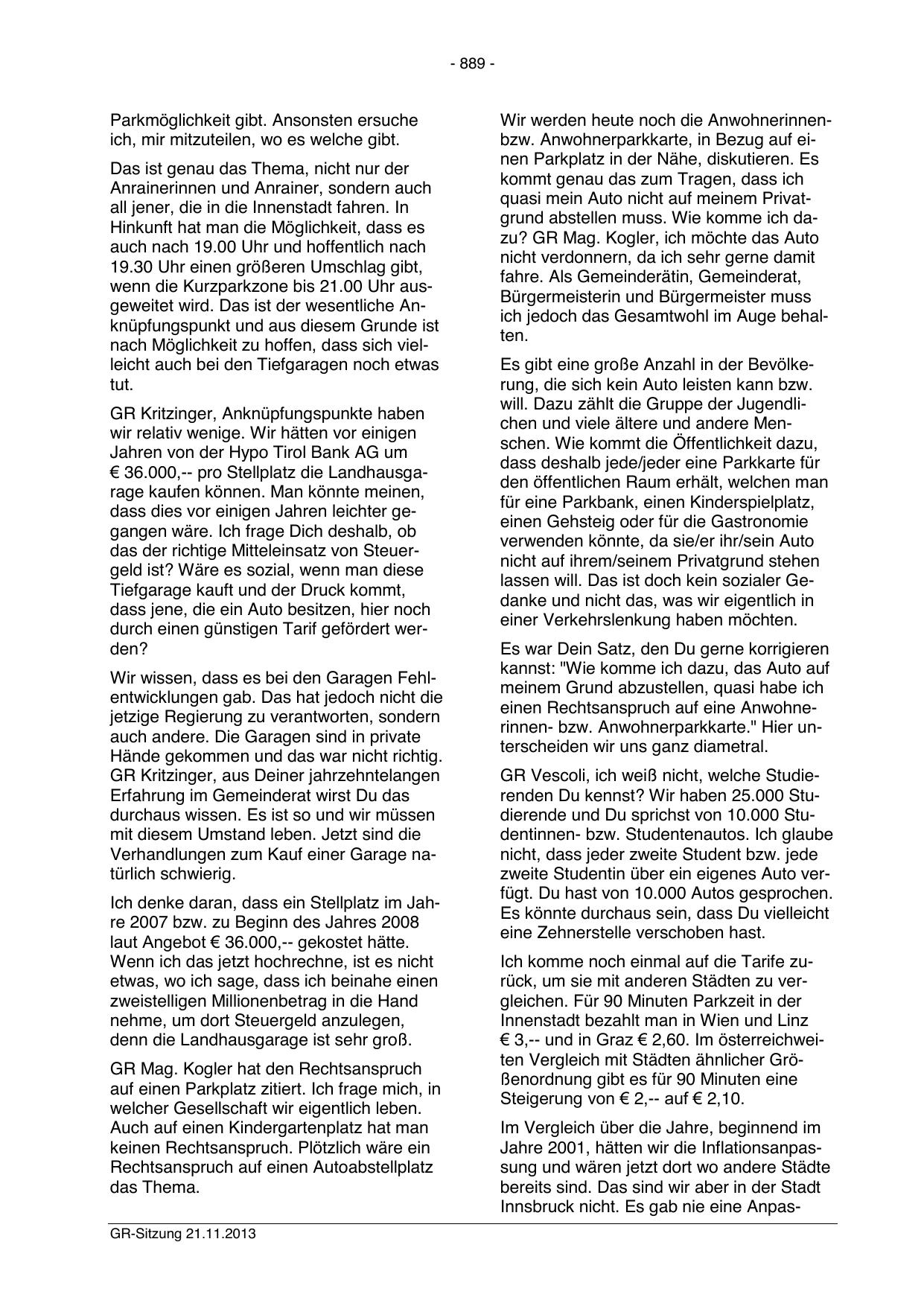 quasi mein Auto nicht auf meinem Privatgrund abstellen muss. Wie komme ich dazu? GR Mag. Kogler, ich möchte das Auto