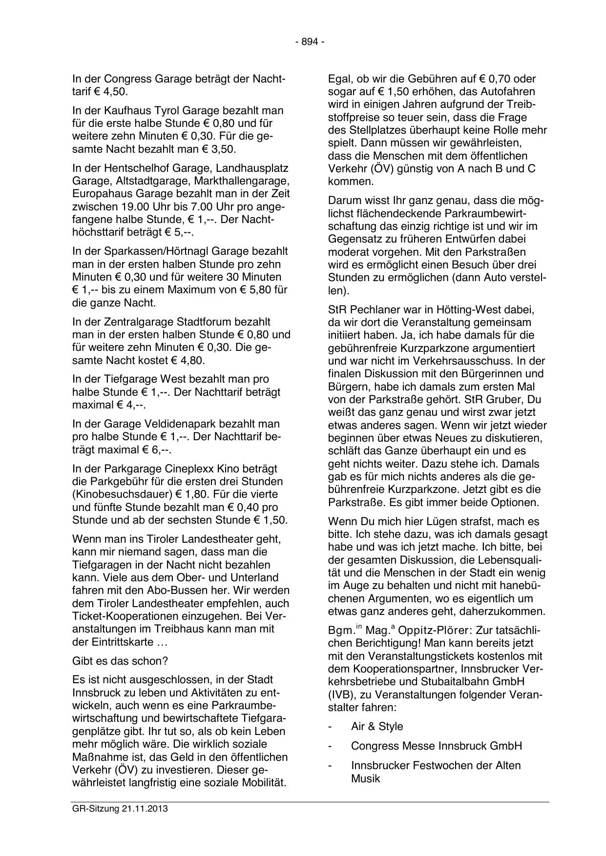 Innsbruck zu leben und Aktivitäten zu entwickeln, auch wenn es eine Parkraumbewirtschaftung und bewirtschaftete Tiefgaragenplätze gibt. Ihr tut so, als ob kein Leben