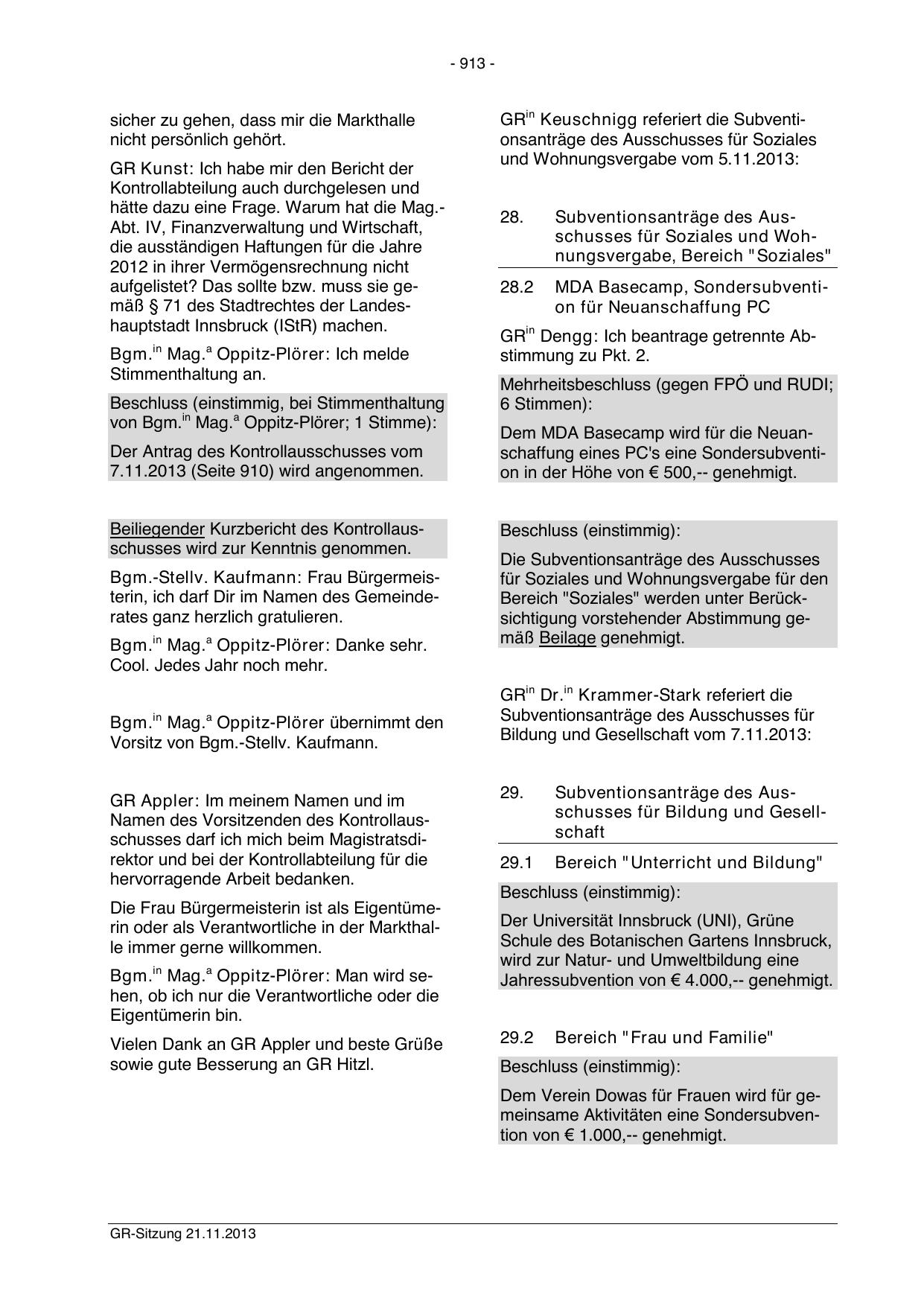 aufgelistet? Das sollte bzw. muss sie gemäß § 71 des Stadtrechtes der Landeshauptstadt Innsbruck (IStR) machen.