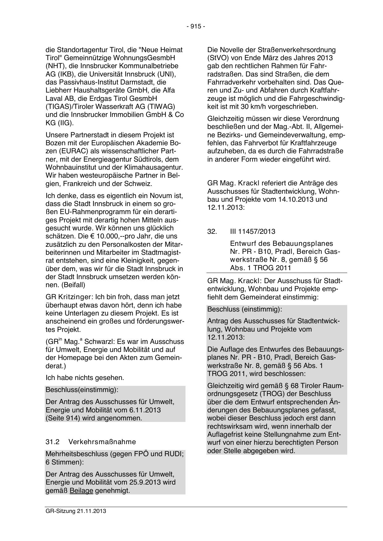 der Stadt Innsbruck umsetzen werden können. (Beifall)
