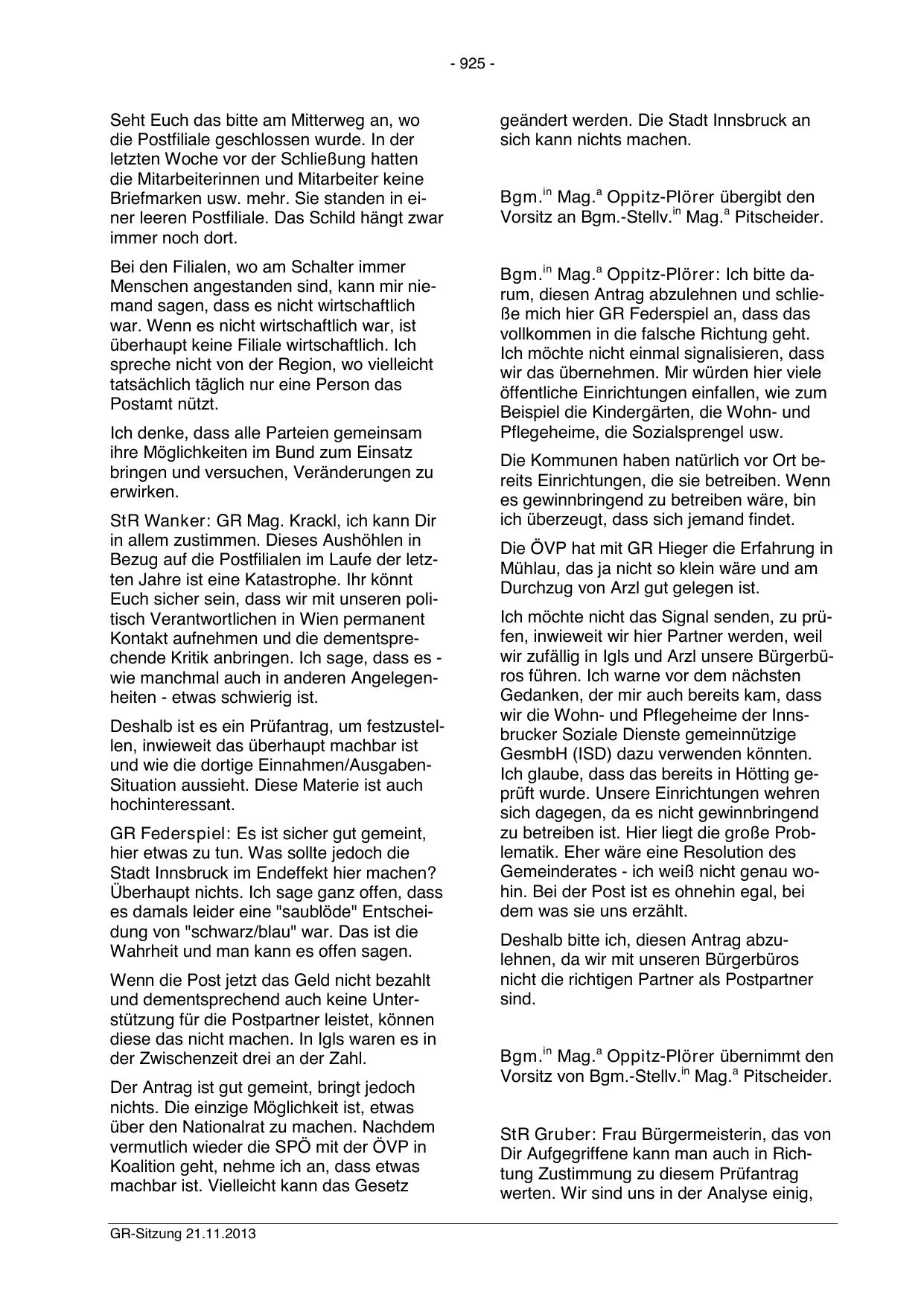 wir zufällig in Igls und Arzl unsere Bürgerbüros führen. Ich warne vor dem nächsten