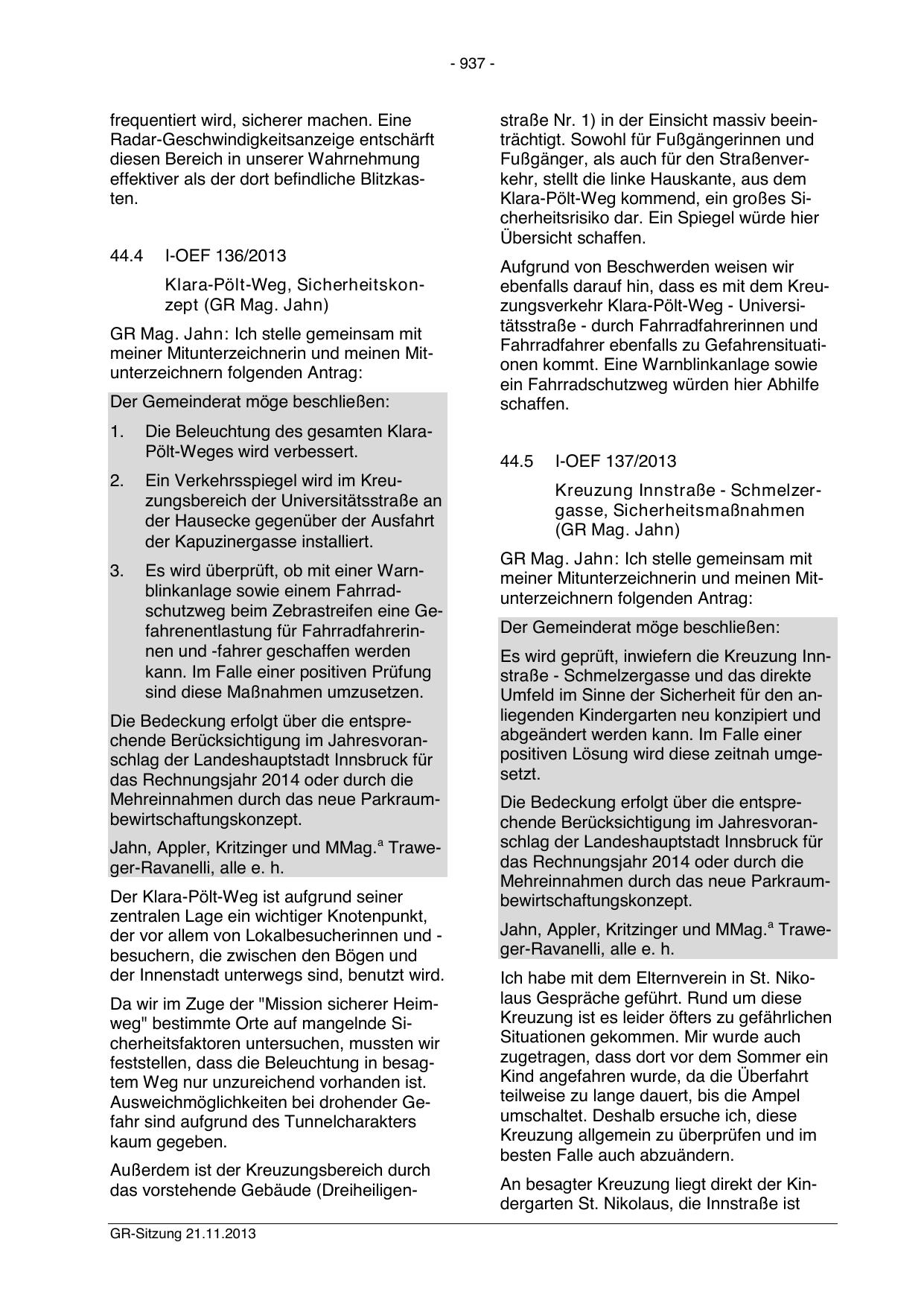 Klara-Pölt-Weg, Sicherheitskonzept (GR Mag. Jahn)
