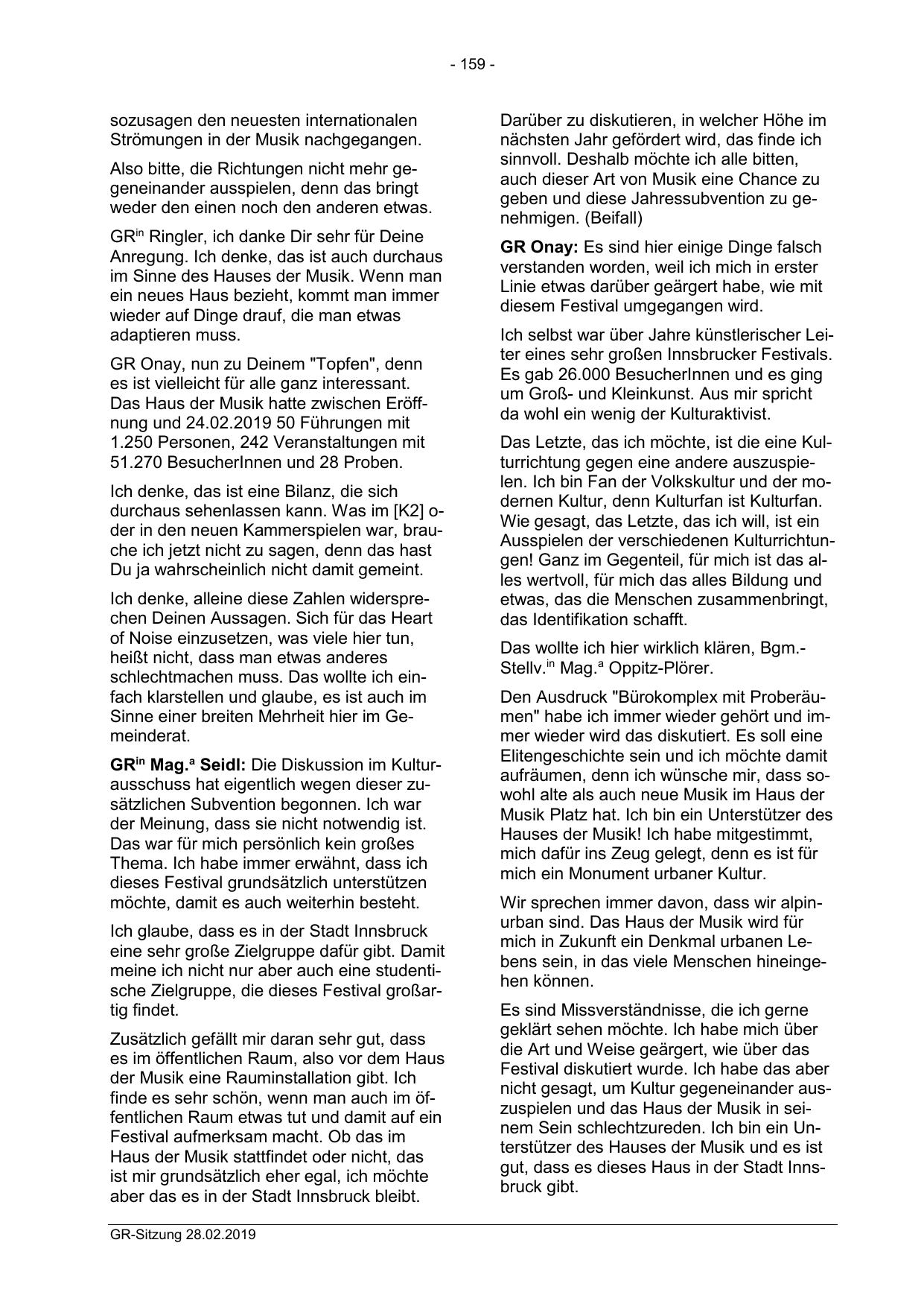 nicht gesagt, um Kultur gegeneinander auszuspielen und das Haus der Musik in seinem Sein schlechtzureden. Ich bin ein Unterstützer des Hauses der Musik und es ist