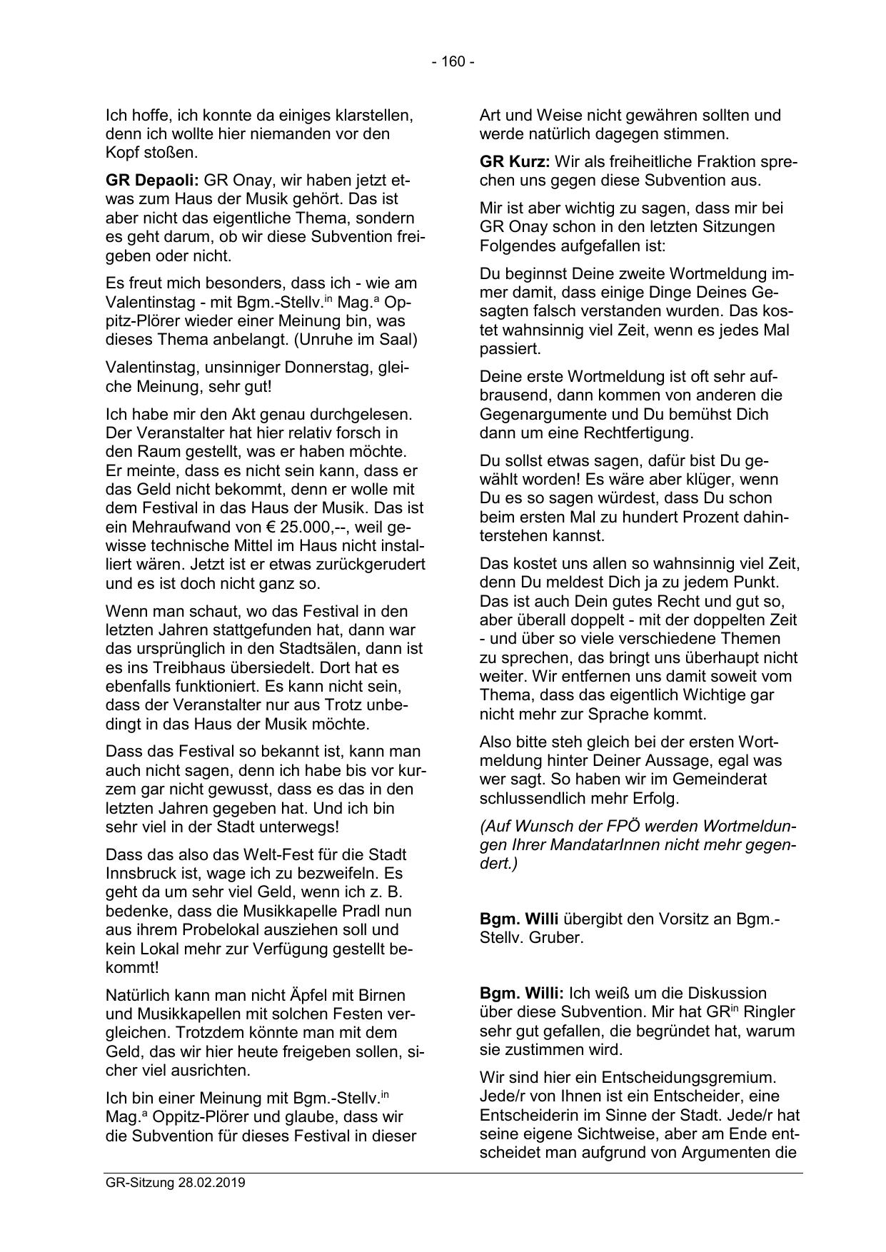 (Auf Wunsch der FPÖ werden Wortmeldungen Ihrer MandatarInnen nicht mehr gegendert.)