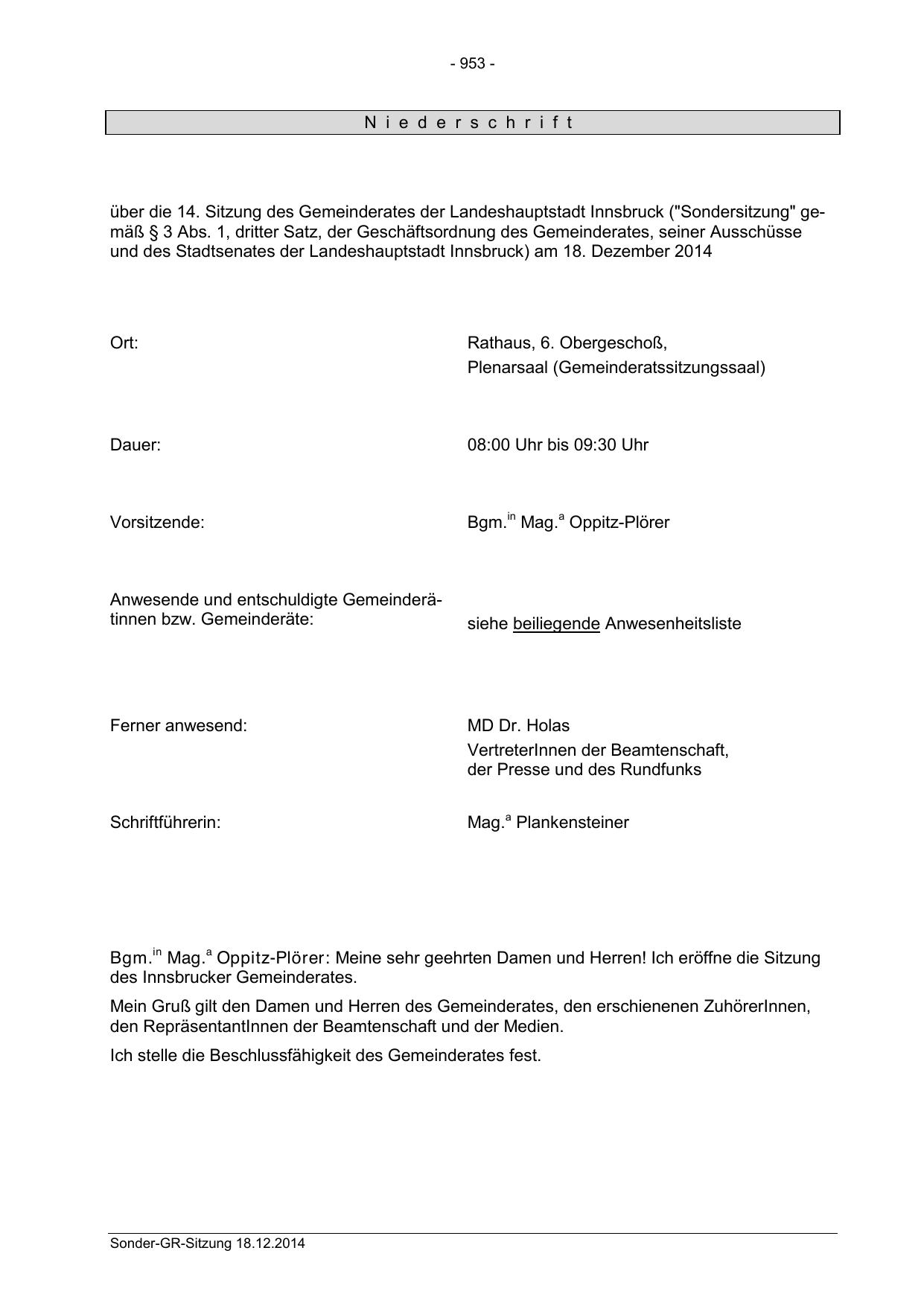 Sonder-GR-Sitzung 18.12.2014