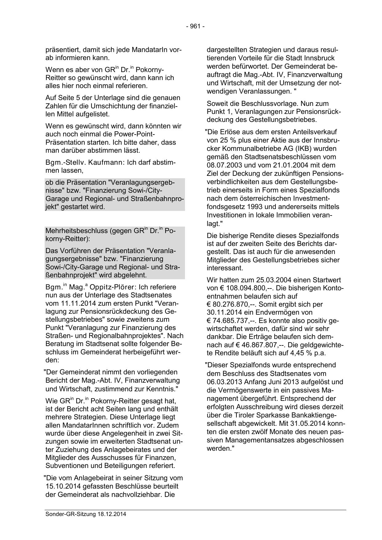 wurde über diese Angelegenheit in zwei Sitzungen sowie im erweiterten Stadtsenat unter Zuziehung des Anlagebeirates und der