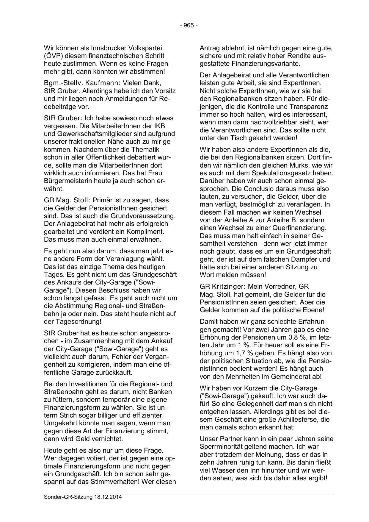 Sonder-GR-Sitzung 18.12.2014