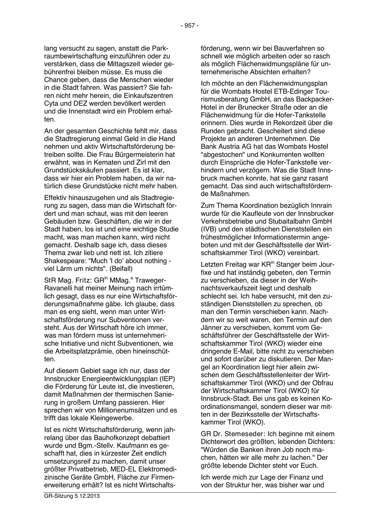 größter Privatbetrieb, MED-EL Elektromedizinische Geräte GmbH, Fläche zur Firmenerweiterung erhält? Ist es nicht WirtschaftsGR-Sitzung 5.12.2013