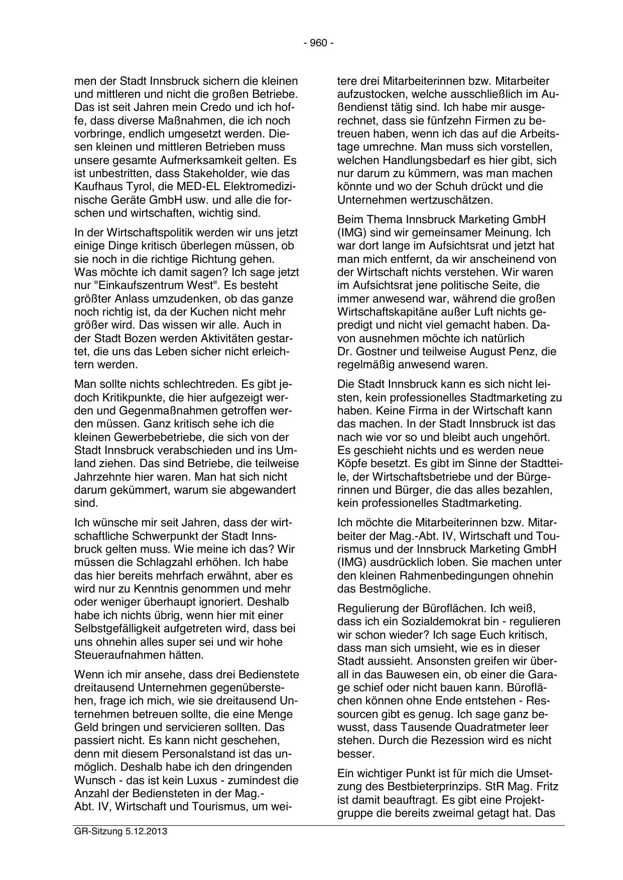 Ein wichtiger Punkt ist für mich die Umsetzung des Bestbieterprinzips. StR Mag. Fritz