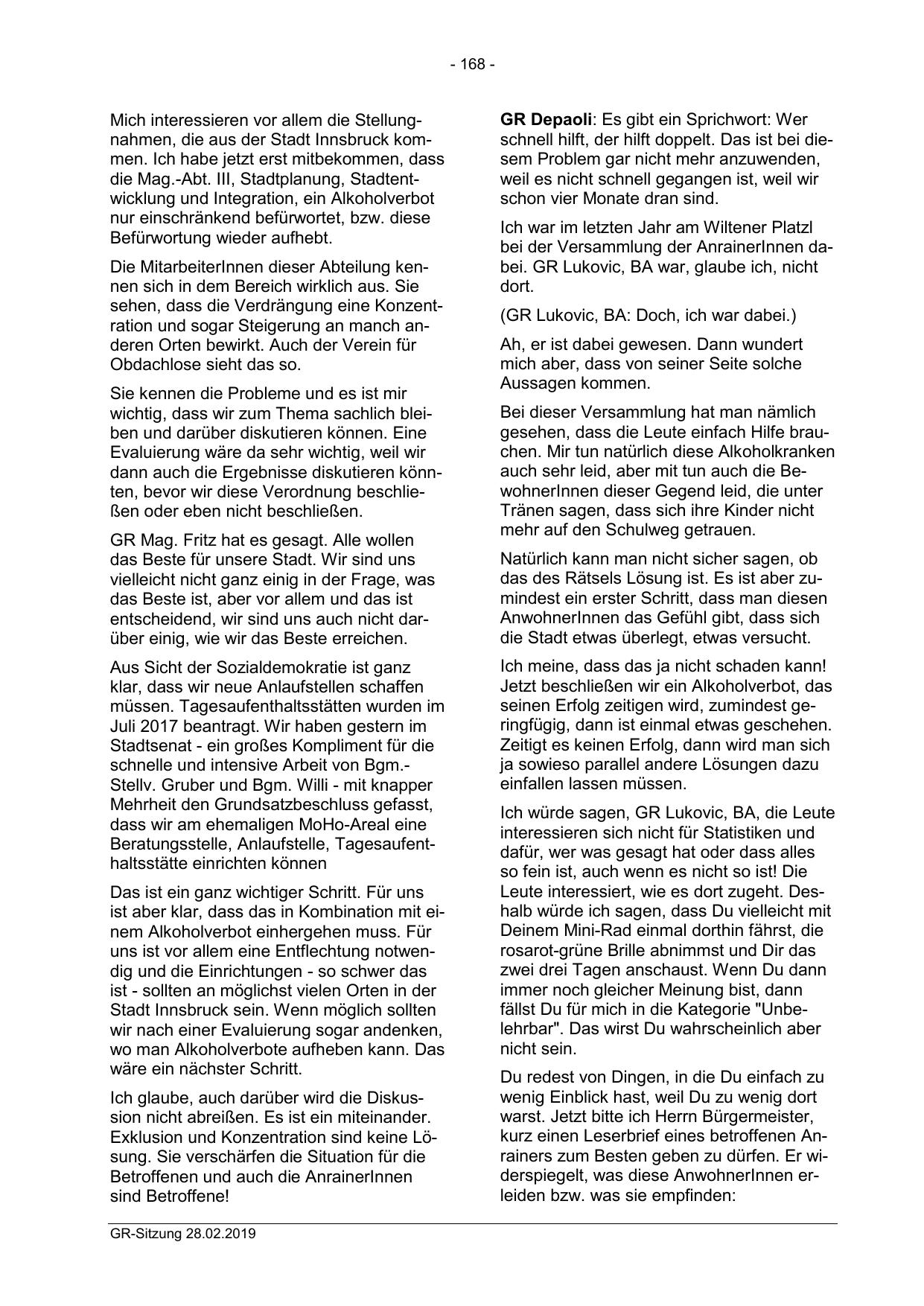 Mich interessieren vor allem die Stellungnahmen, die aus der Stadt Innsbruck kommen. Ich habe jetzt erst mitbekommen, dass