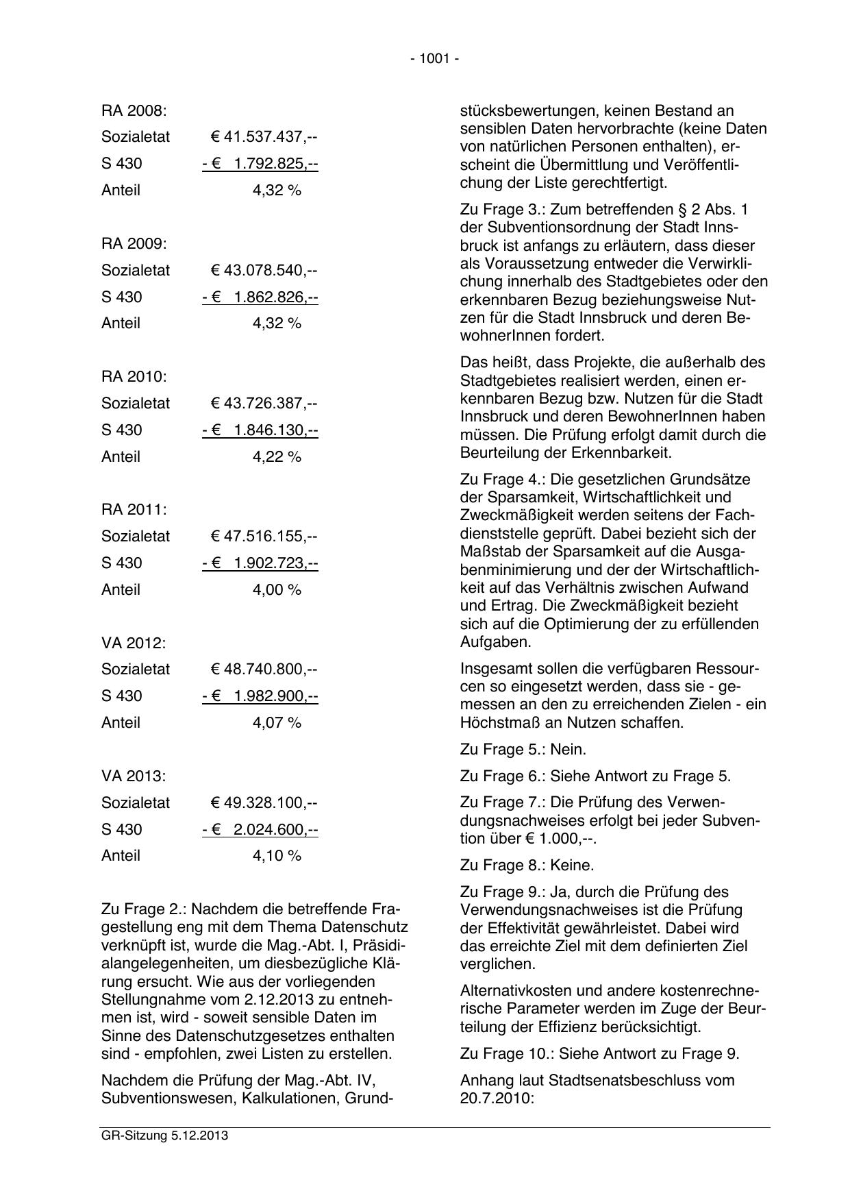 Subventionswesen, Kalkulationen, GrundGR-Sitzung 5.12.2013