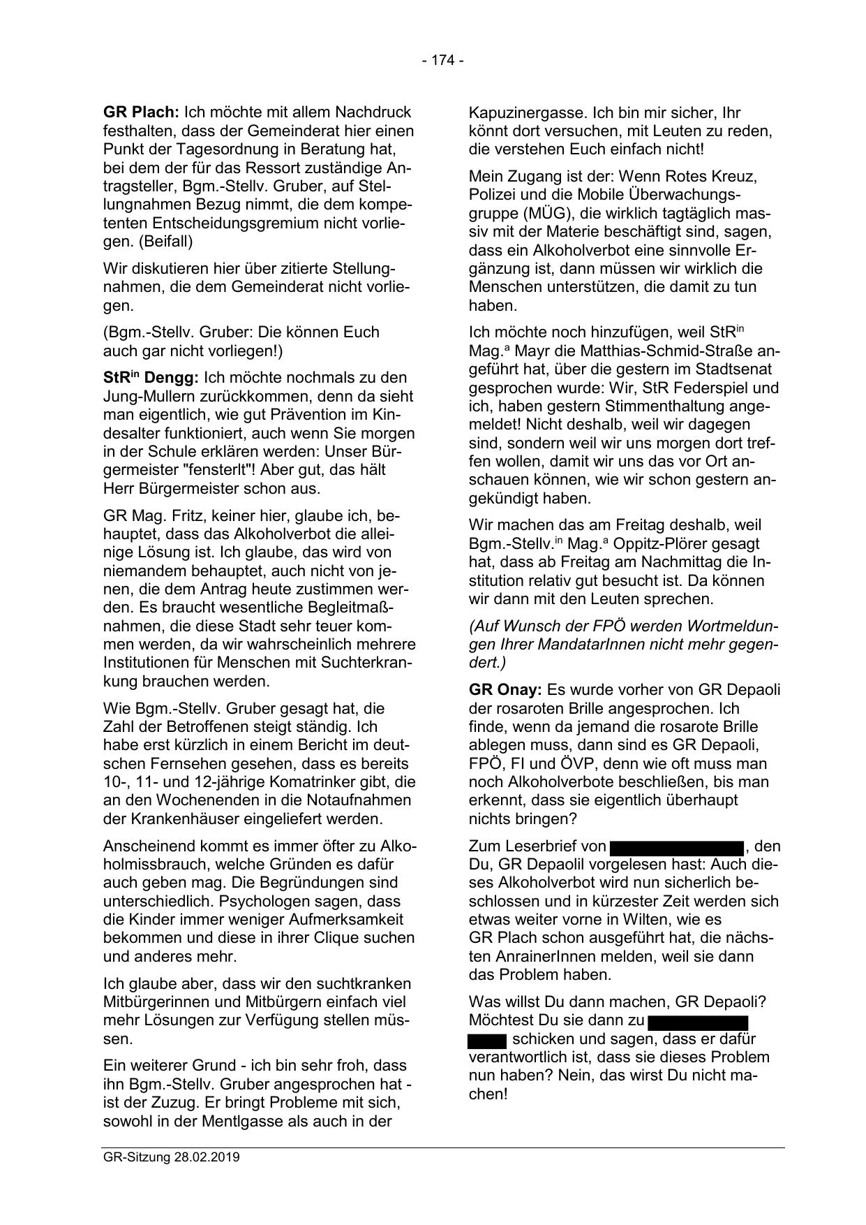 Du, GR Depaolil vorgelesen hast: Auch dieses Alkoholverbot wird nun sicherlich beschlossen und in kürzester Zeit werden sich