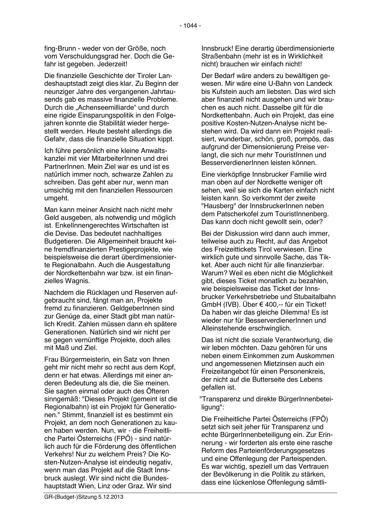 wenn man das Projekt auf die Stadt Innsbruck auslegt. Wir sind nicht die Bundeshauptstadt Wien, Linz oder Graz. Wir sind