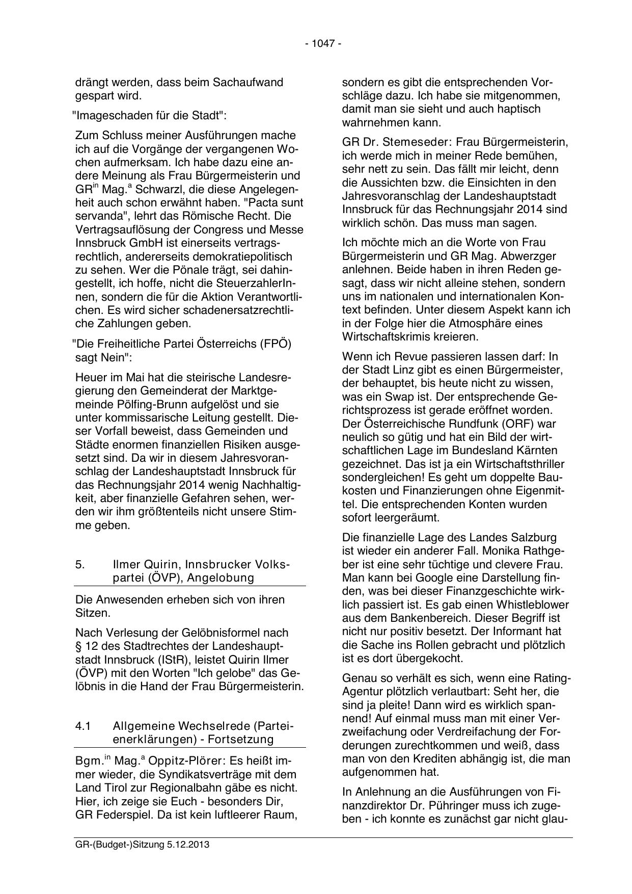 § 12 des Stadtrechtes der Landeshauptstadt Innsbruck (IStR), leistet Quirin Ilmer