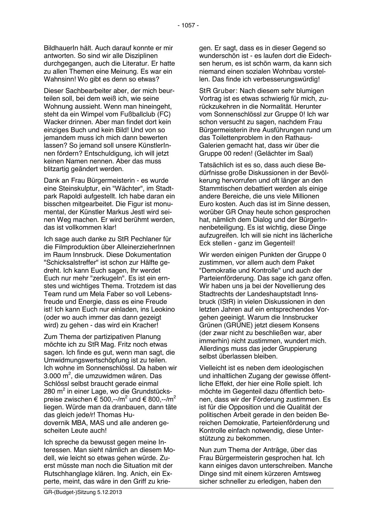 Stadtrechts der Landeshauptstadt Innsbruck (IStR) in vielen Diskussionen in den
