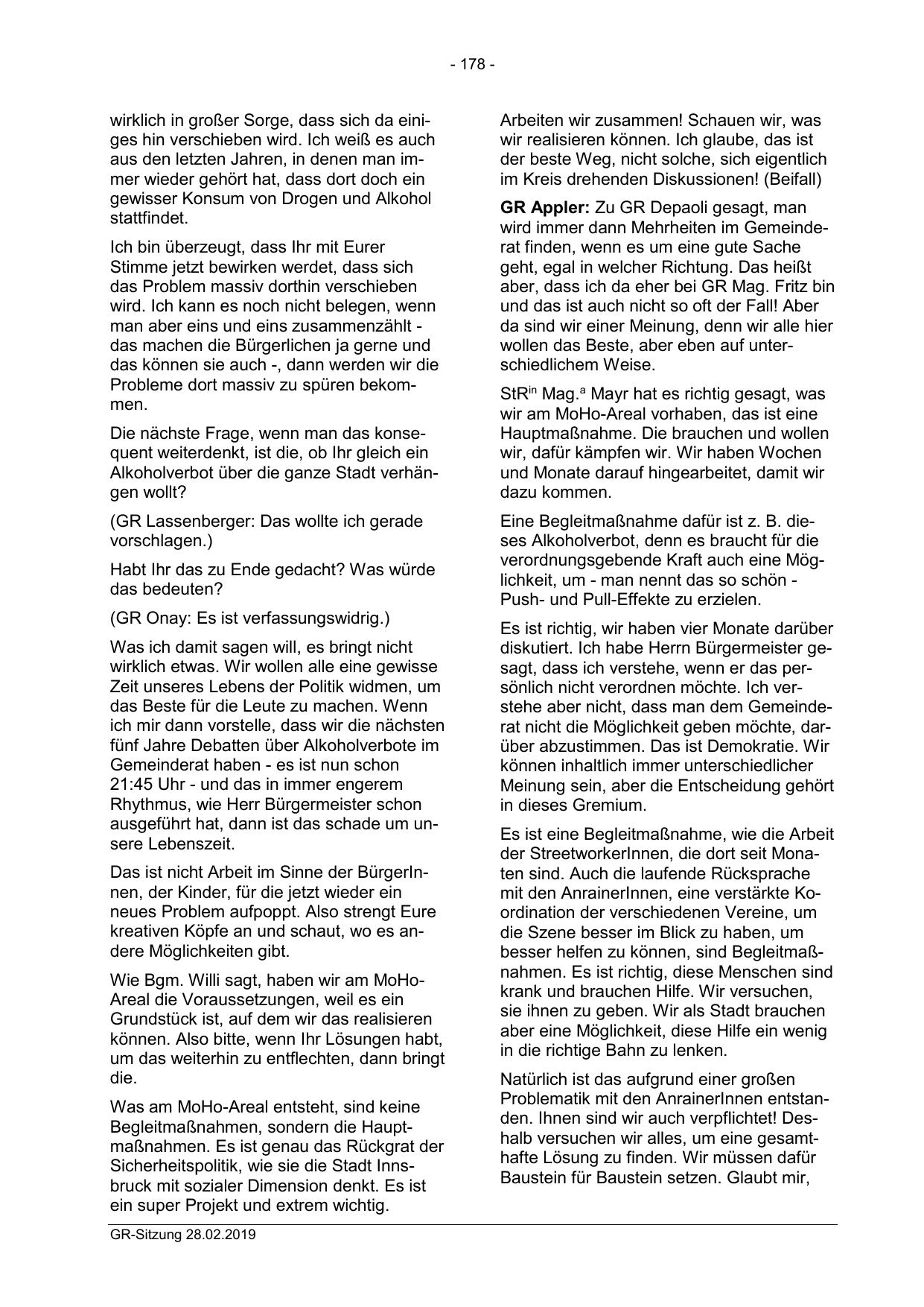 Problematik mit den AnrainerInnen entstanden. Ihnen sind wir auch verpflichtet! Deshalb versuchen wir alles, um eine gesamthafte Lösung zu finden. Wir müssen dafür