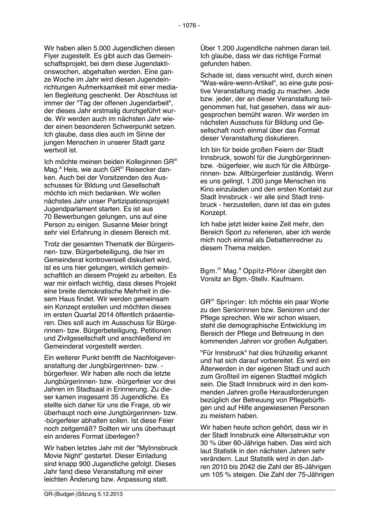 Innsbruck, sowohl für die Jungbürgerinnenbzw. -bügerfeier, wie auch für die Altbürgerinnen- bzw. Altbürgerfeier zuständig. Wenn