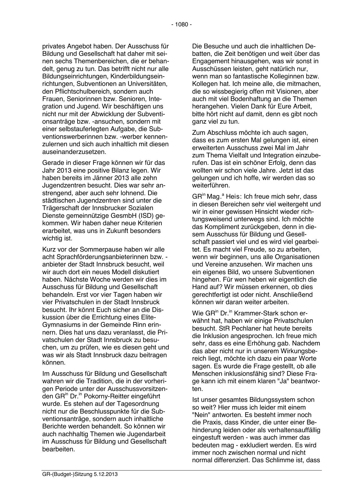 GR-(Budget-)Sitzung 5.12.2013