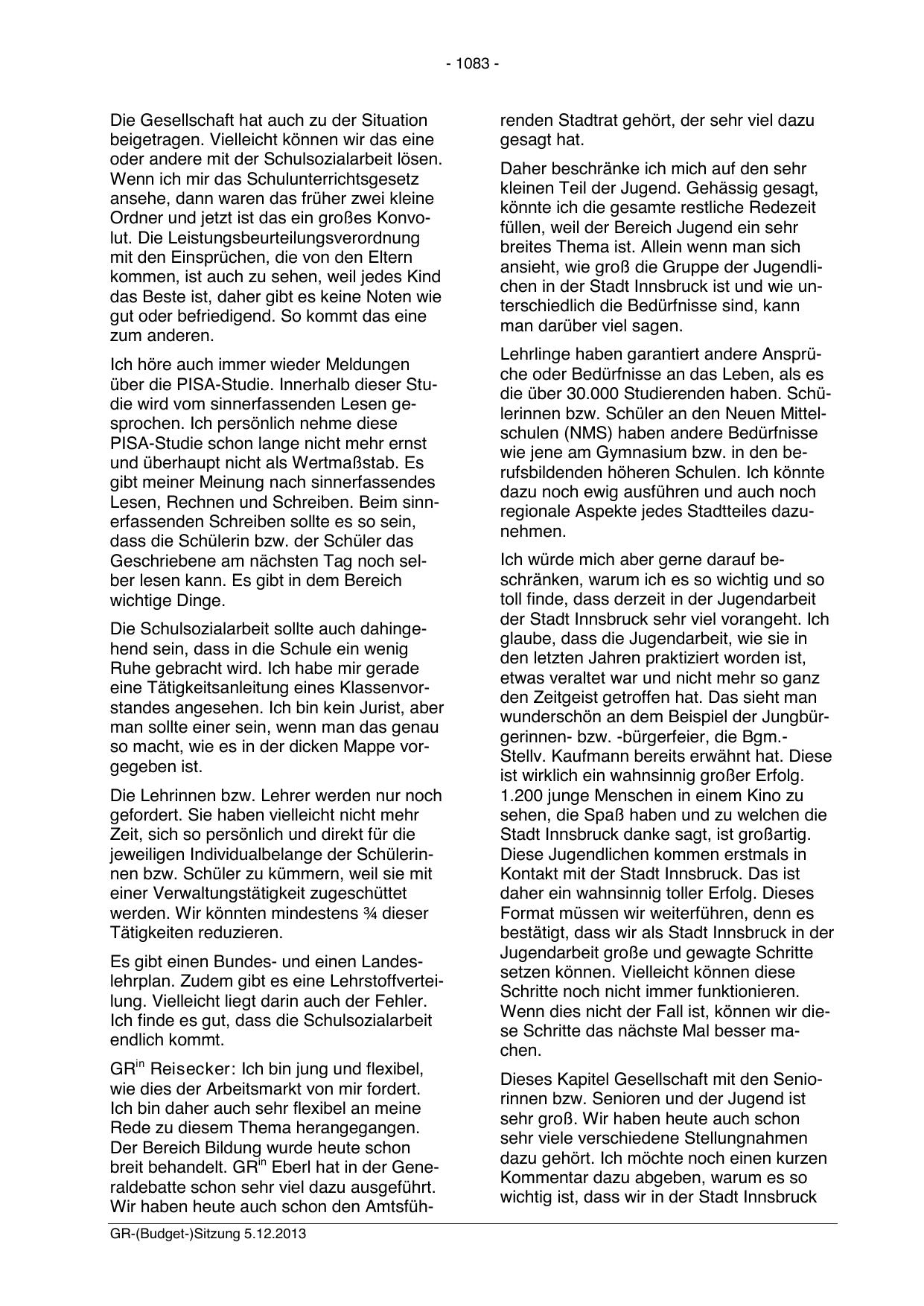 Wir haben heute auch schon den AmtsfühGR-(Budget-)Sitzung 5.12.2013