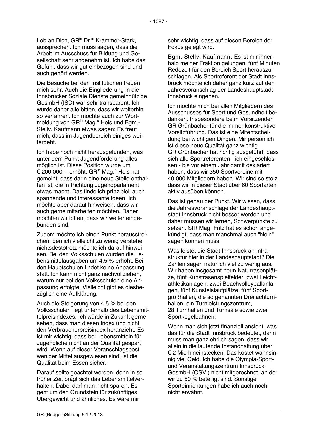 die Jahresvoranschläge der Landeshauptstadt Innsbruck nicht besser werden und