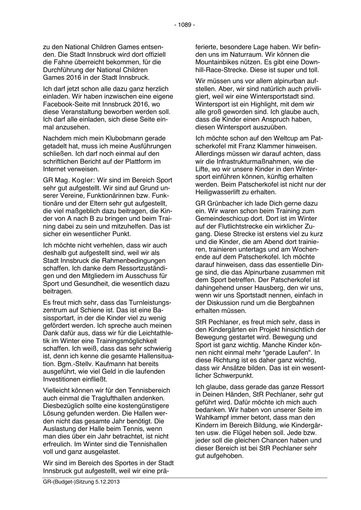 Innsbruck gut aufgestellt, weil wir eine präGR-(Budget-)Sitzung 5.12.2013