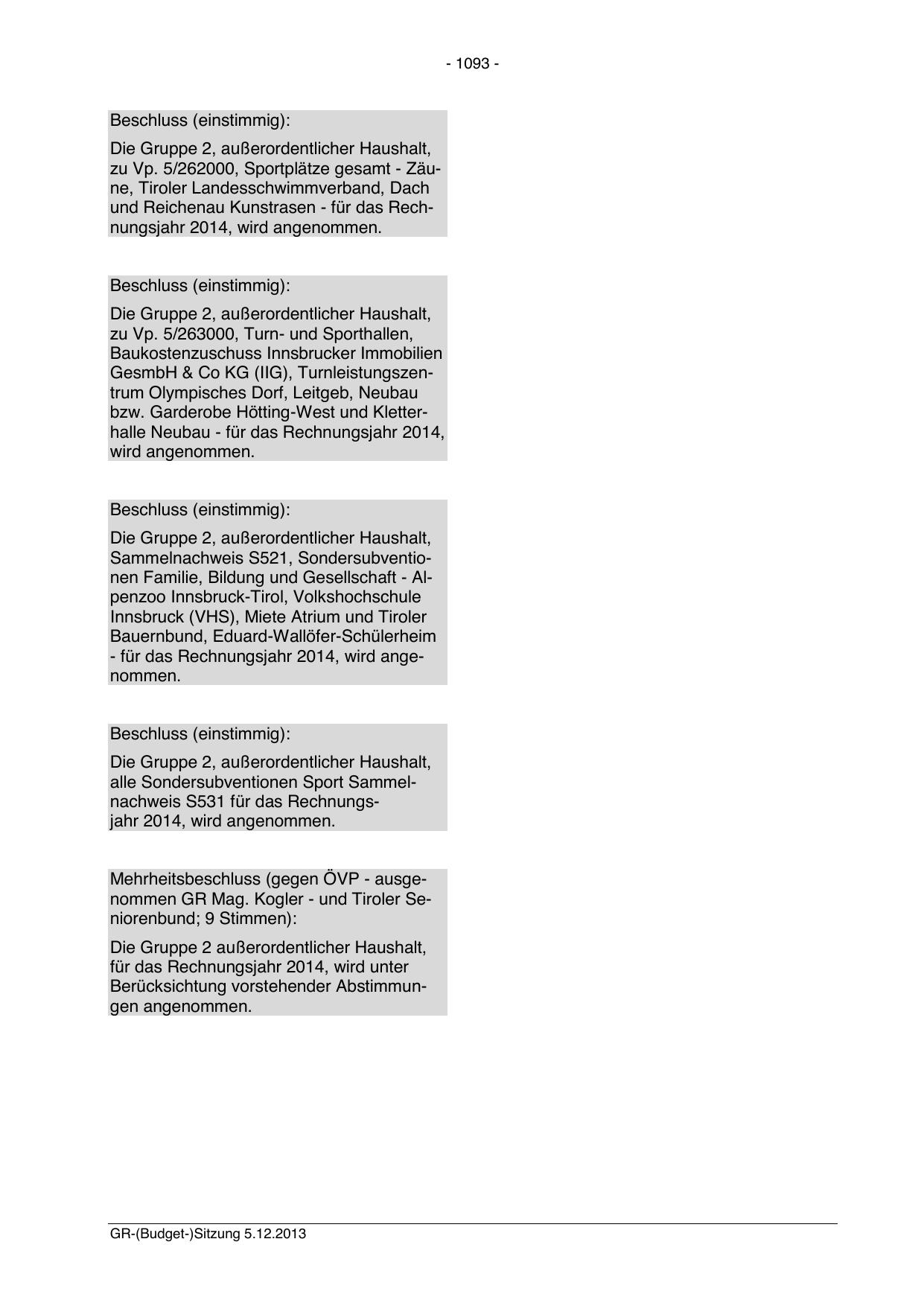 Mehrheitsbeschluss (gegen ÖVP - ausgenommen GR Mag. Kogler - und Tiroler Seniorenbund; 9 Stimmen):