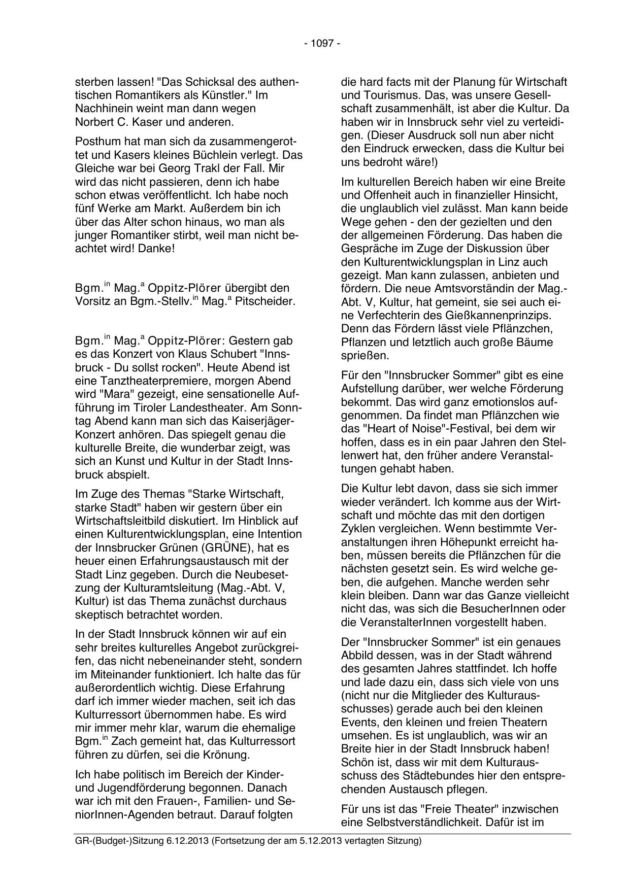 Vorsitz an Bgm.-Stellv.in Mag.a Pitscheider.