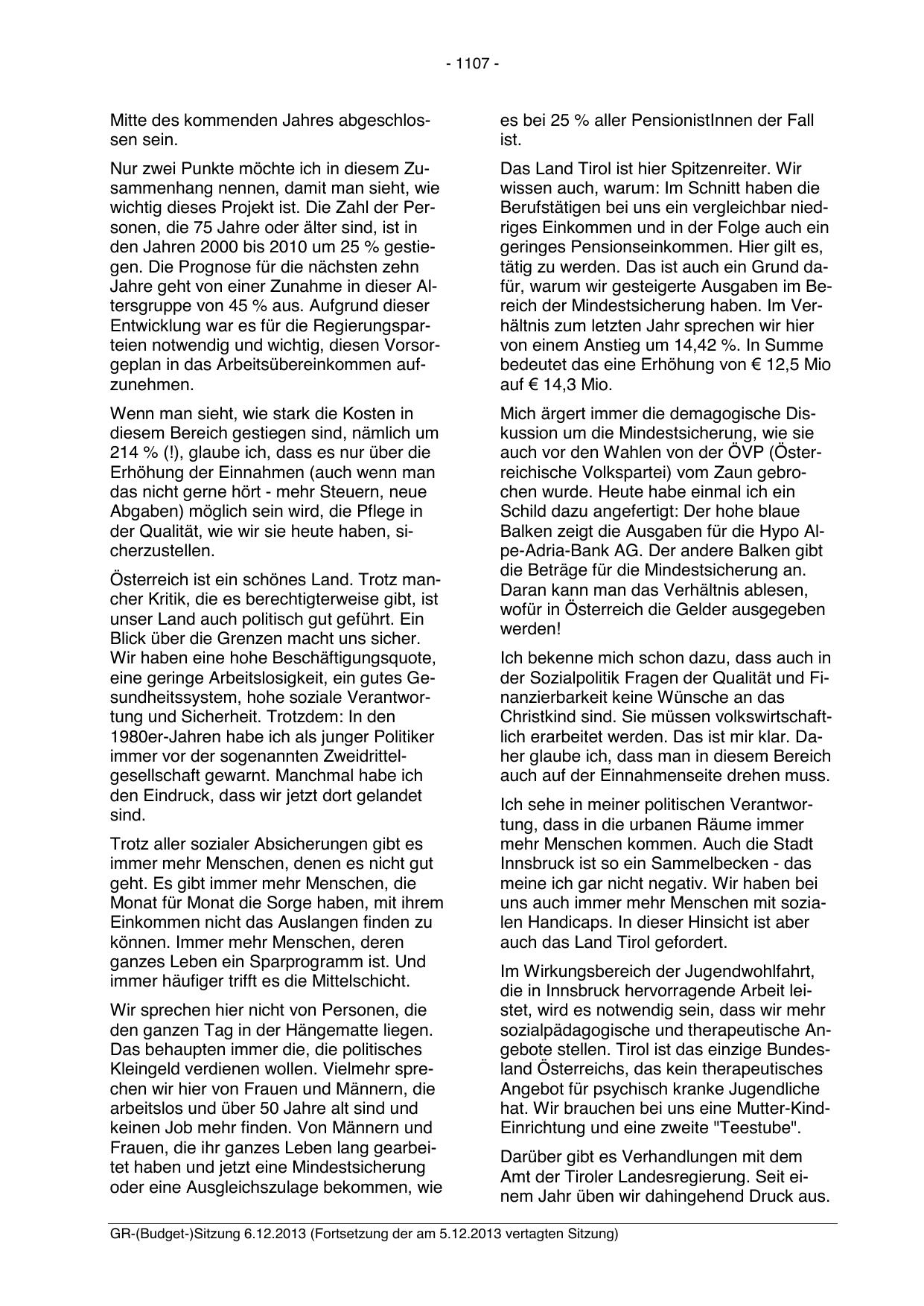 die in Innsbruck hervorragende Arbeit leistet, wird es notwendig sein, dass wir mehr