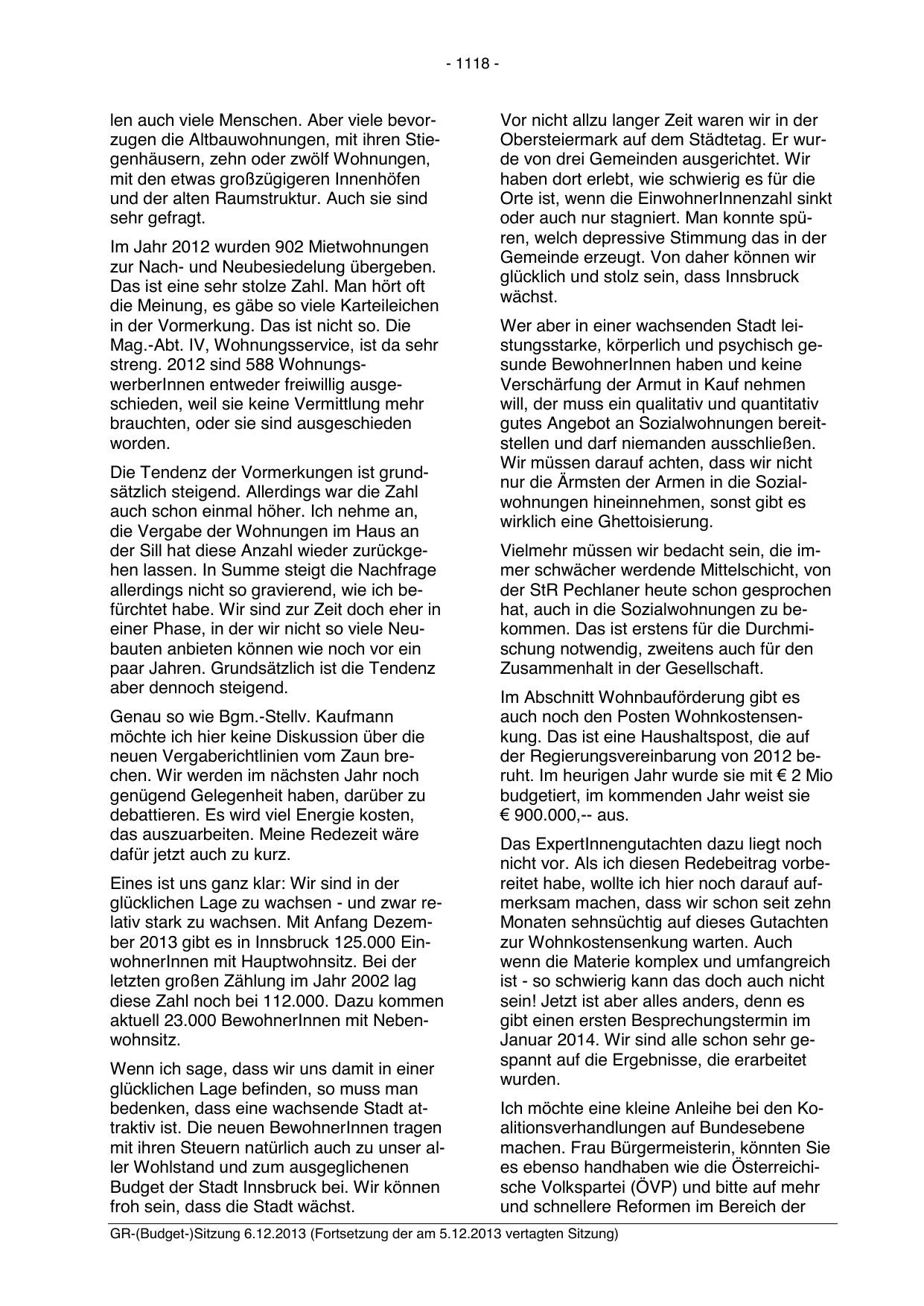GR-(Budget-)Sitzung 6.12.2013 (Fortsetzung der am 5.12.2013 vertagten Sitzung)