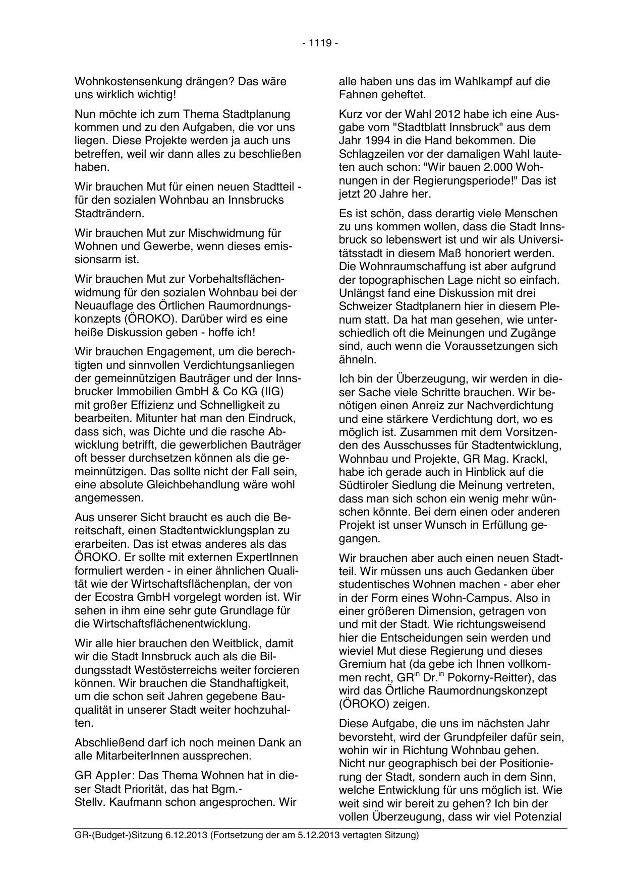 GR Appler: Das Thema Wohnen hat in dieser Stadt Priorität, das hat Bgm.Stellv. Kaufmann schon angesprochen. Wir
