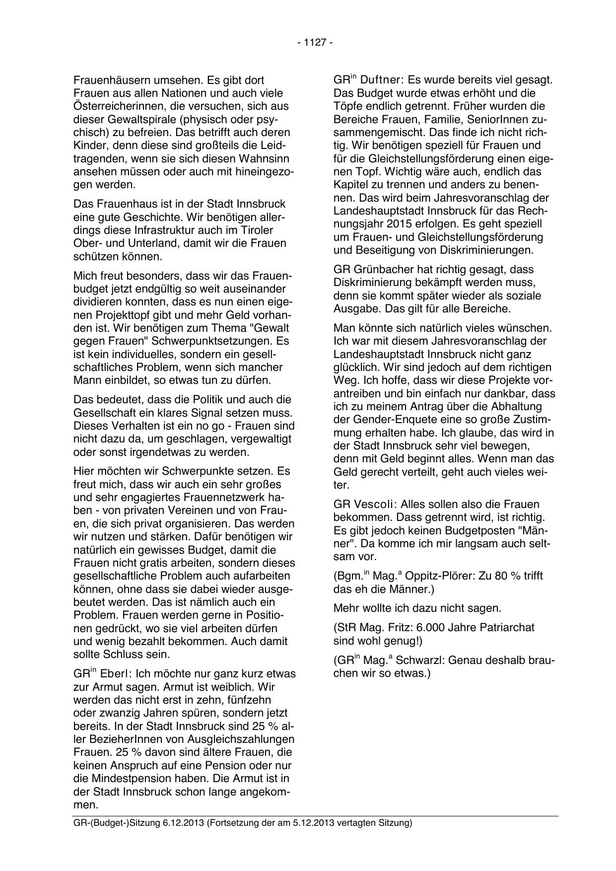 GR-(Budget-)Sitzung 6.12.2013 (Fortsetzung der am 5.12.2013 vertagten Sitzung)