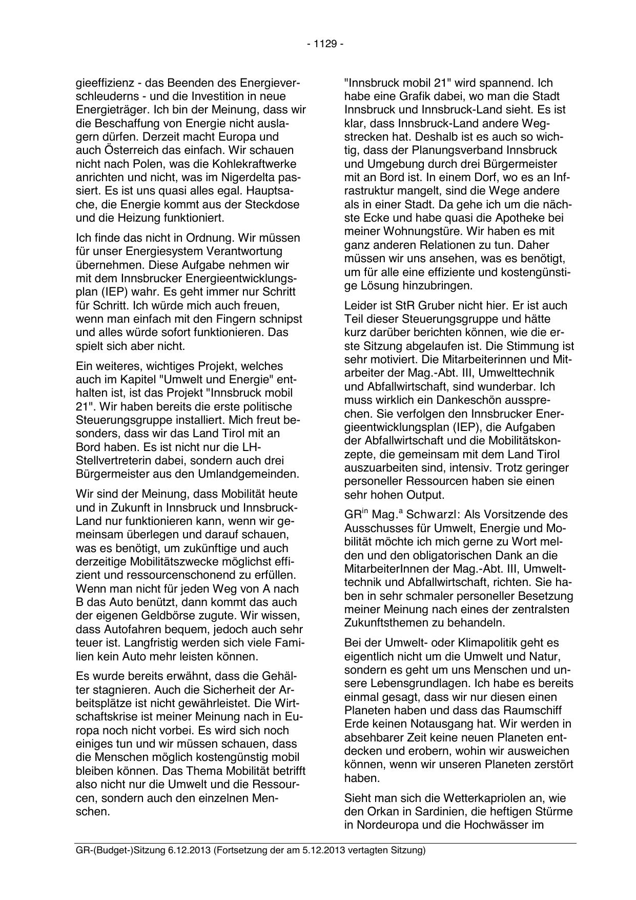 muss wirklich ein Dankeschön aussprechen. Sie verfolgen den Innsbrucker Energieentwicklungsplan (IEP), die Aufgaben
