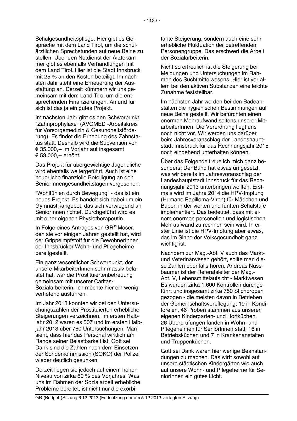 Landeshauptstadt Innsbruck für das Rechnungsjahr 2013 unterbringen wollten. Erstmals wird im Jahre 2014 die HPV-Impfung