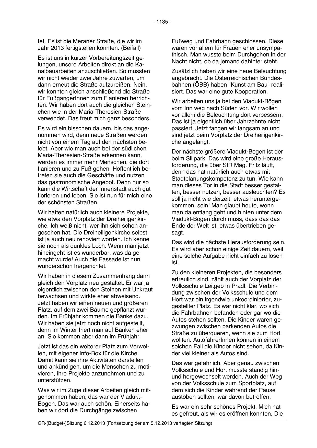 GR-(Budget-)Sitzung 6.12.2013 (Fortsetzung der am 5.12.2013 vertagten Sitzung)