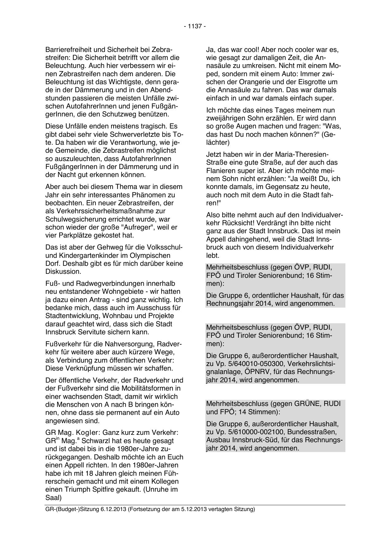 GR-(Budget-)Sitzung 6.12.2013 (Fortsetzung der am 5.12.2013 vertagten Sitzung)
