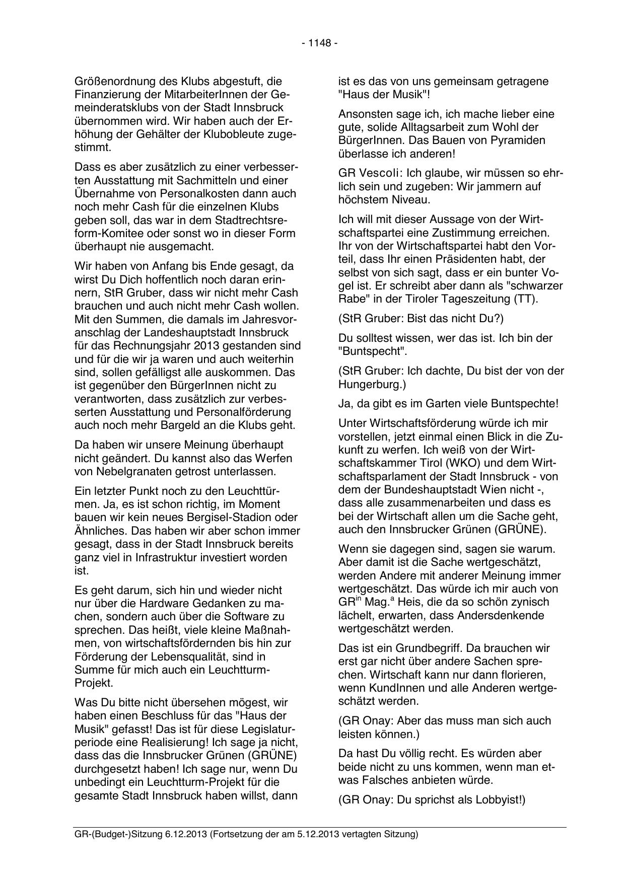 GR-(Budget-)Sitzung 6.12.2013 (Fortsetzung der am 5.12.2013 vertagten Sitzung)