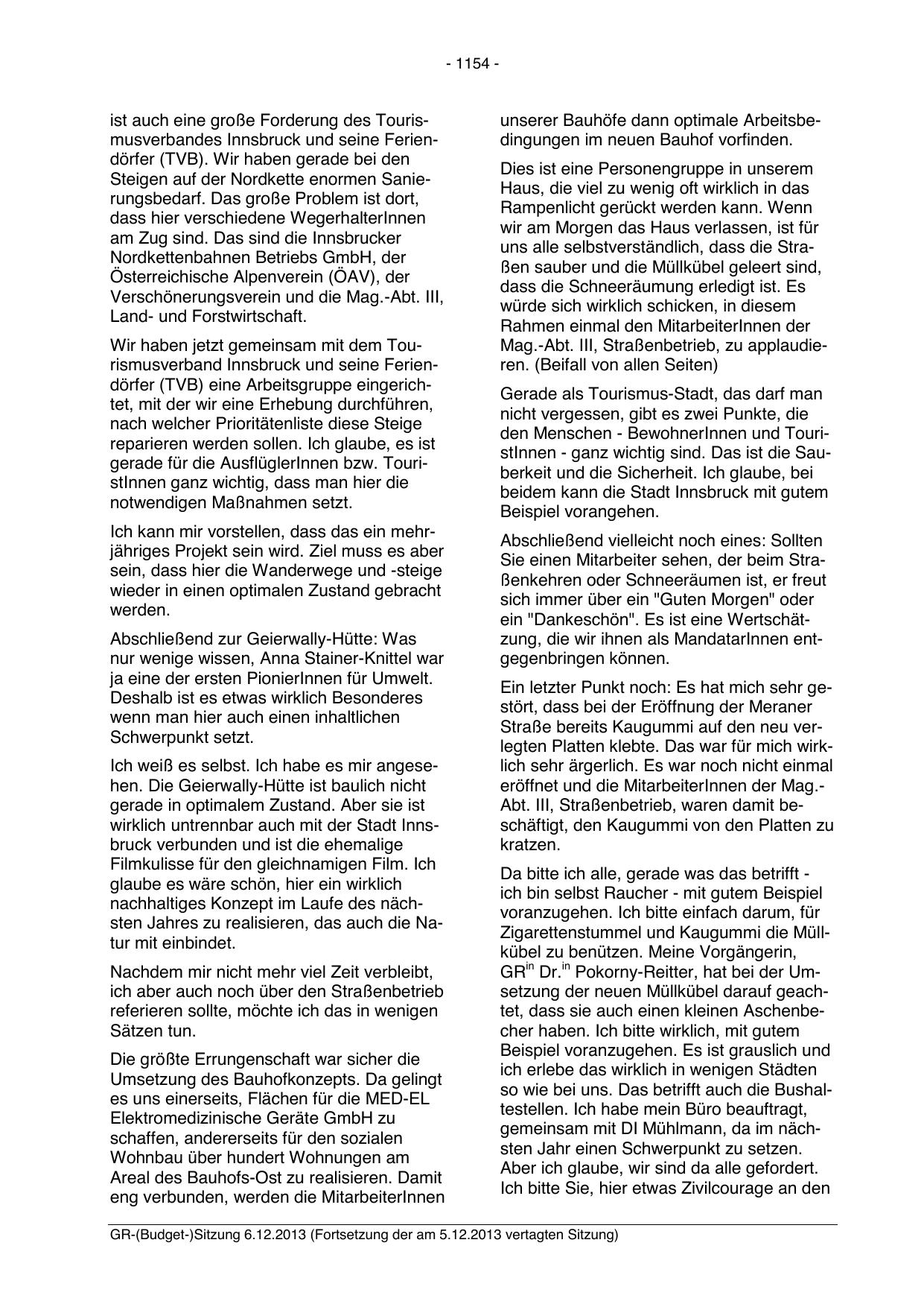 GR-(Budget-)Sitzung 6.12.2013 (Fortsetzung der am 5.12.2013 vertagten Sitzung)