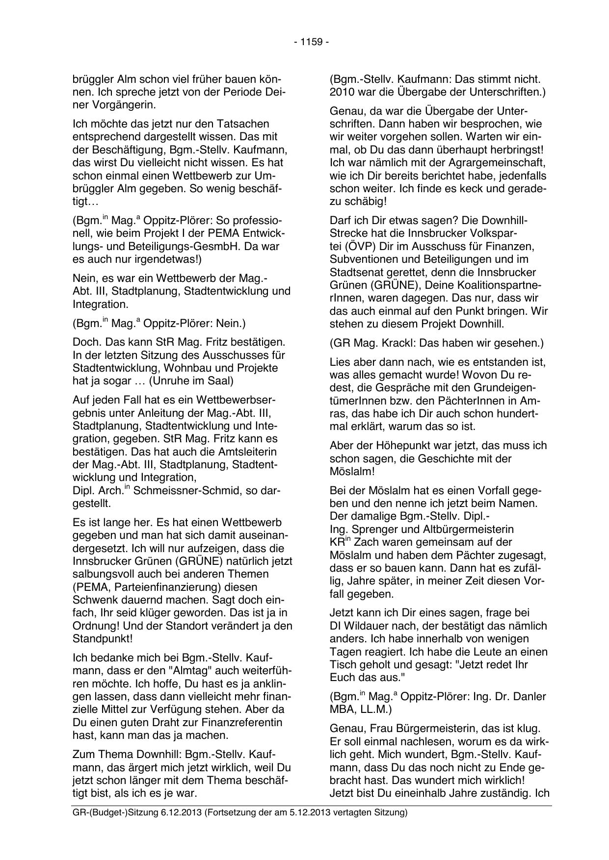 GR-(Budget-)Sitzung 6.12.2013 (Fortsetzung der am 5.12.2013 vertagten Sitzung)