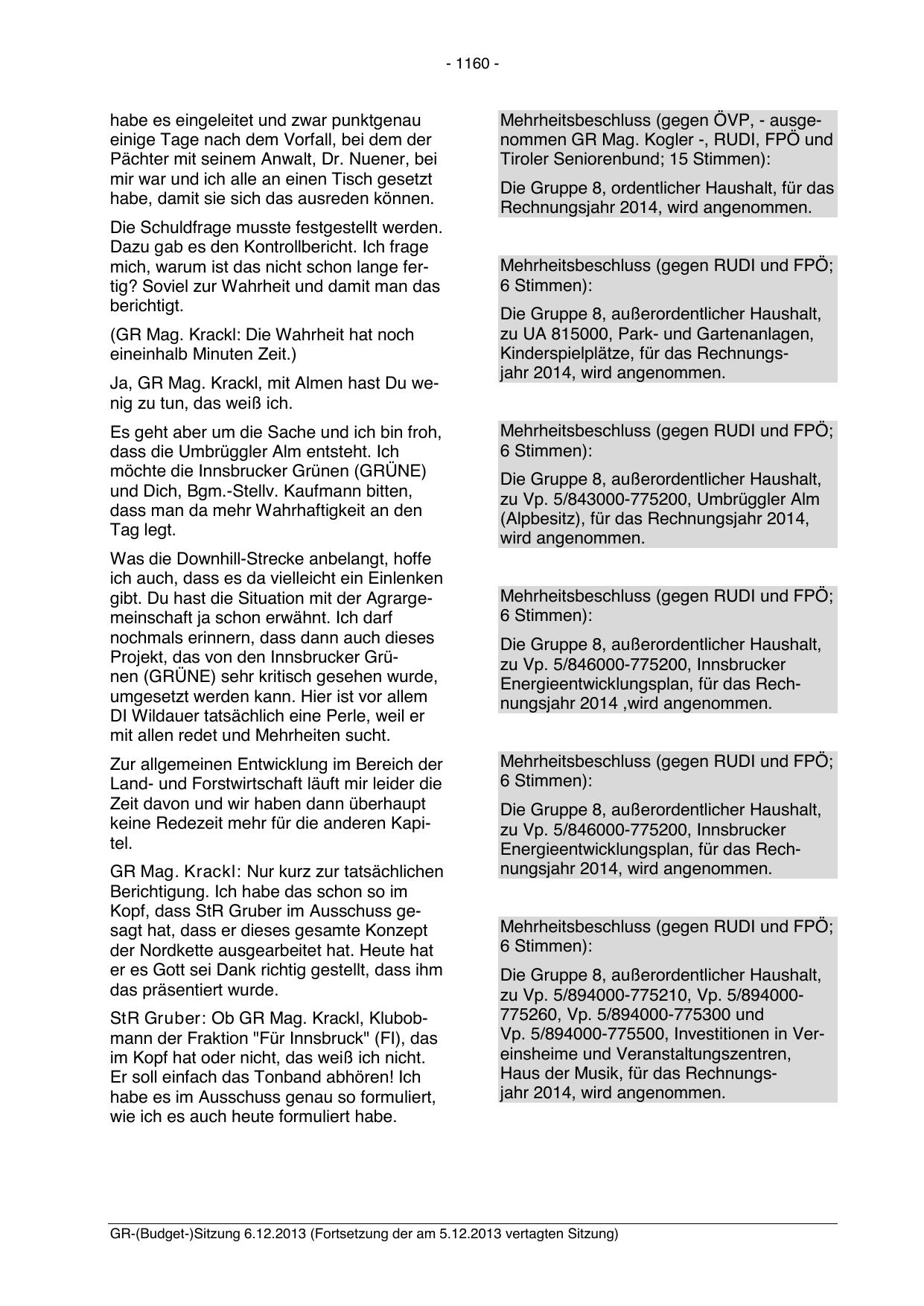 StR Gruber: Ob GR Mag. Krackl, Klubobmann der Fraktion "Für Innsbruck" (FI), das