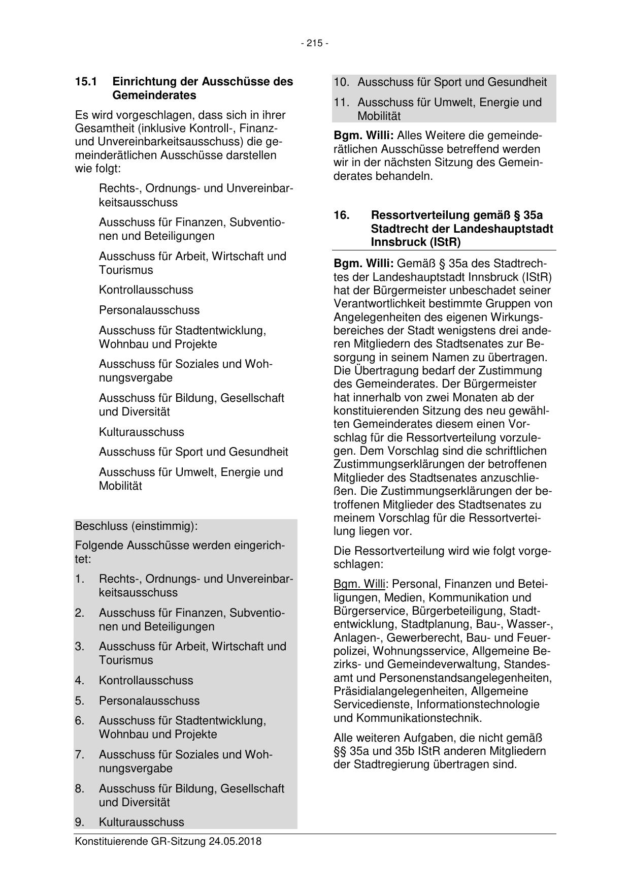 Bgm. Willi: Gemäß § 35a des Stadtrechtes der Landeshauptstadt Innsbruck (IStR)